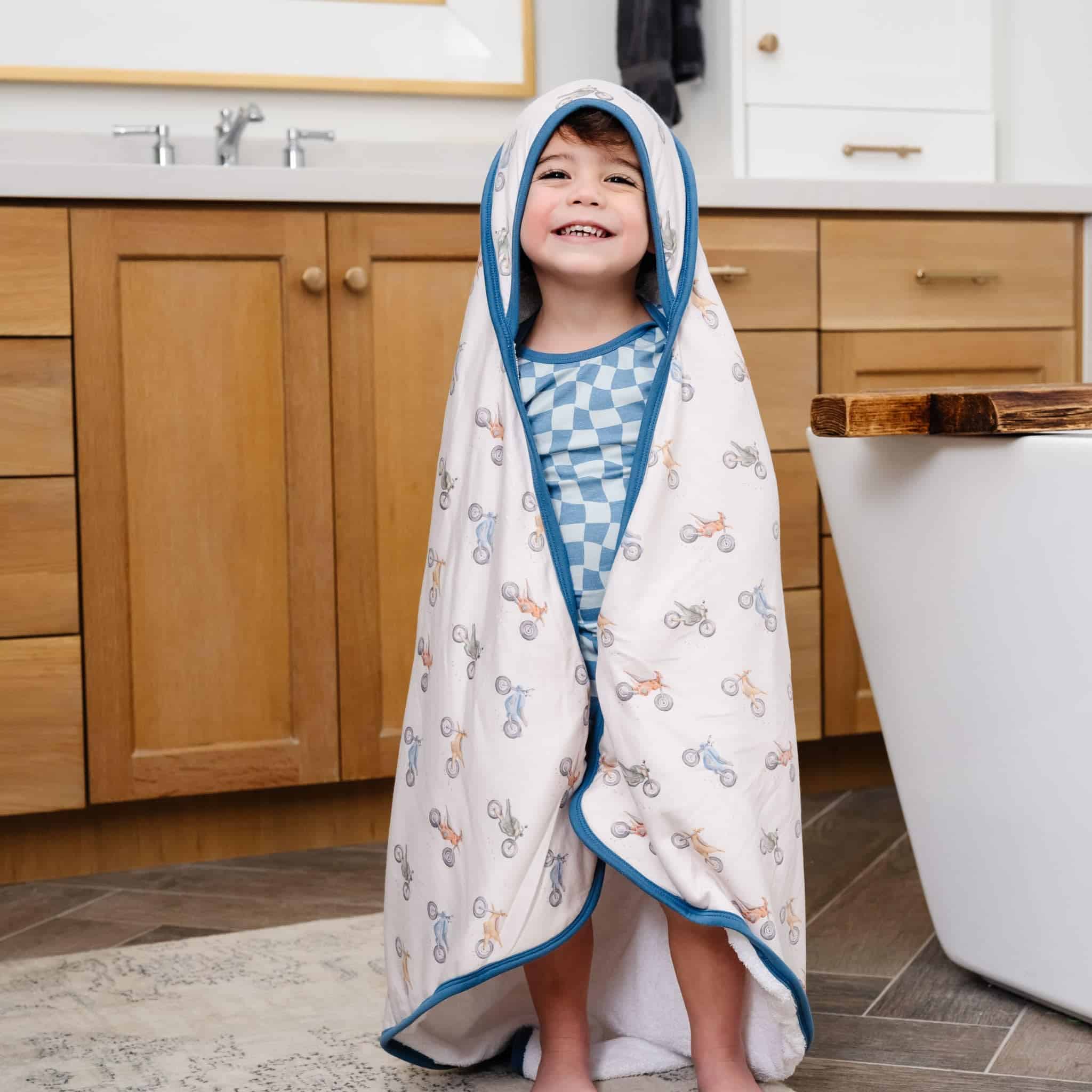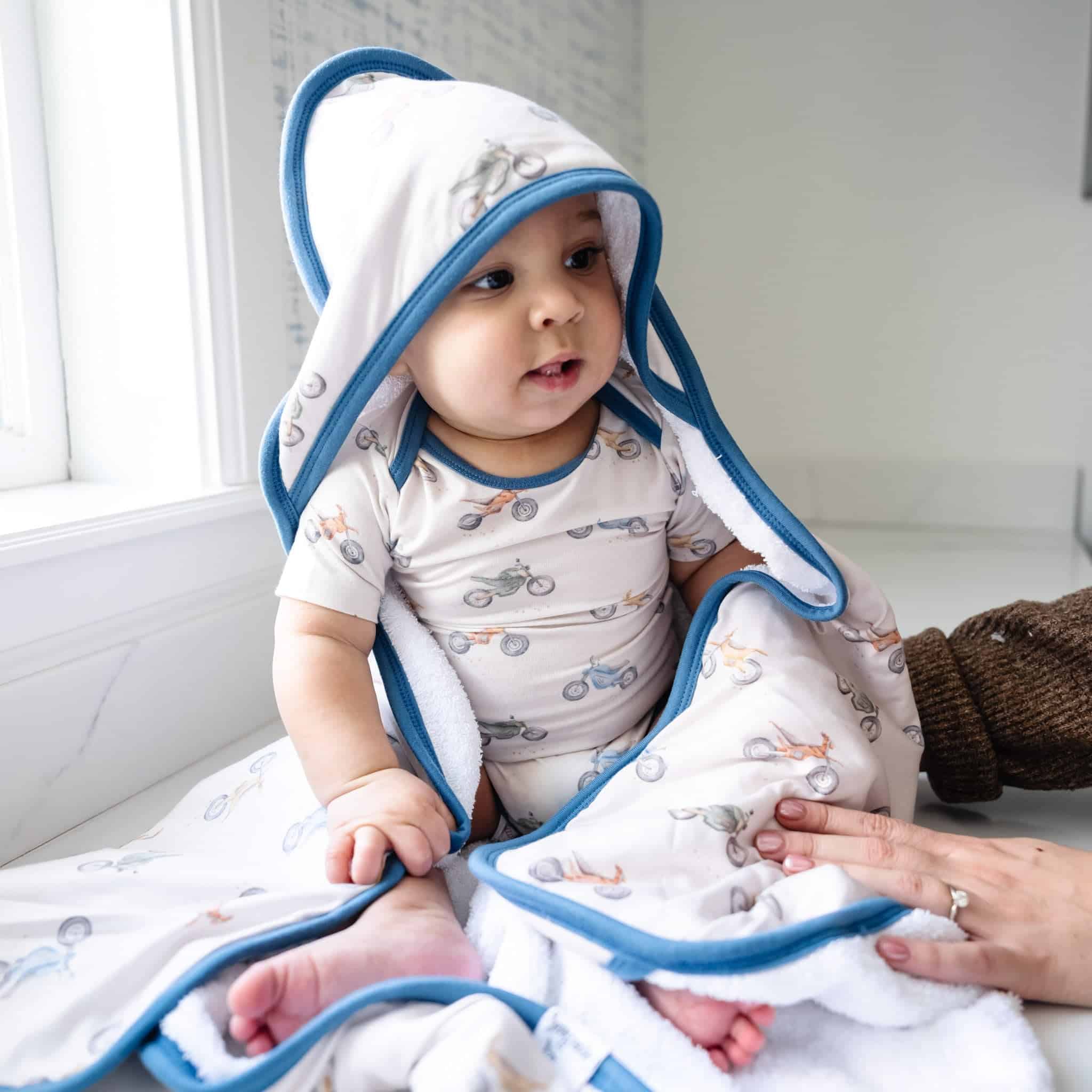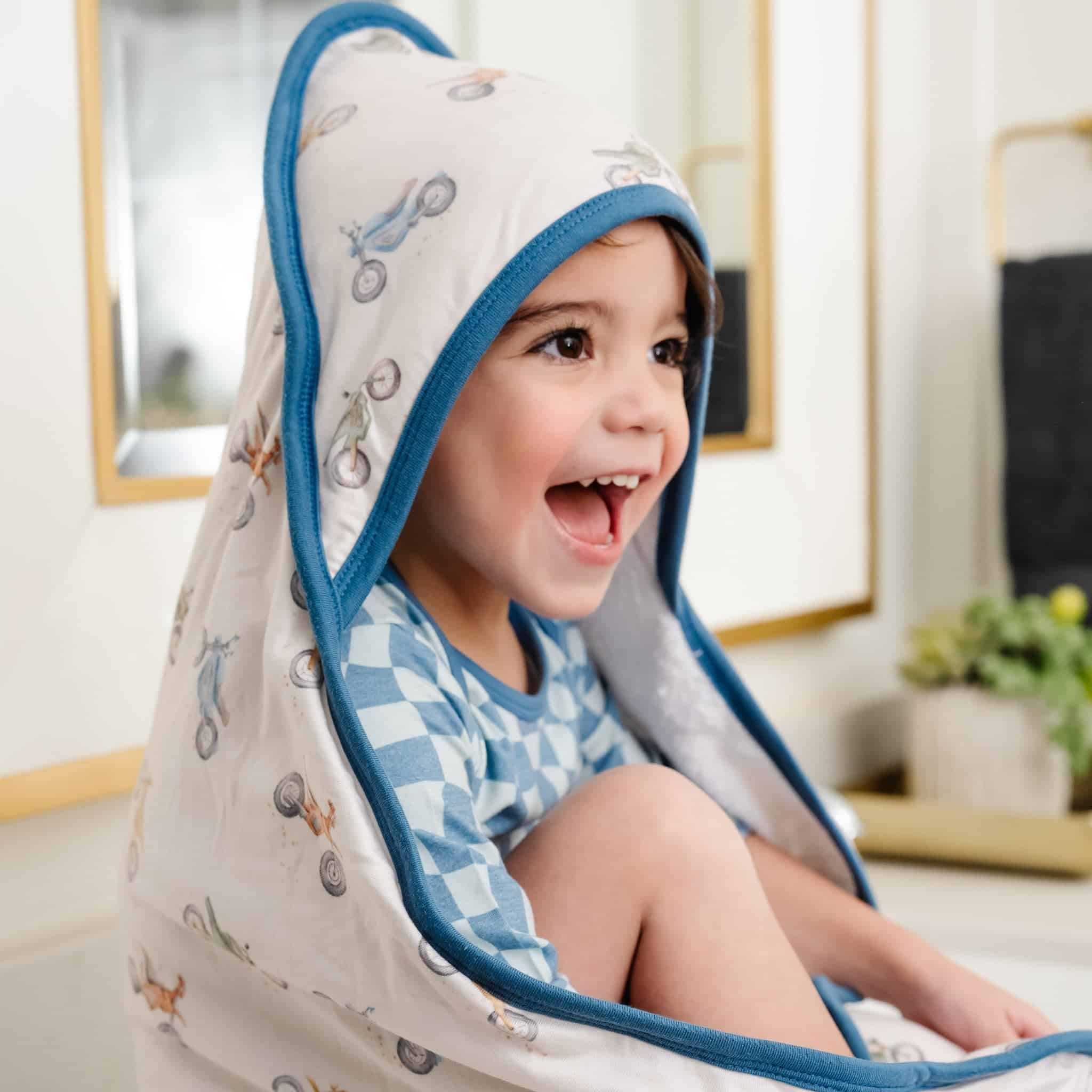 Una manera encantadora de secarse – ¿Quién dice que el baño no puede ser moderno? La moda se une a la función una vez más con nuestras nuevas Toallas con Capucha de Punto Copper Pearl, un esencial de la rutina de baño con estilo elevado. Hechas con tela de algodón de punto premium y disponibles en una variedad de patrones y colores modernos, nuestras toallas con capucha están respaldadas con tela de felpa mejorada para proporcionar calidez y comodidad definitivas. Cada una de nuestras toallas está diseñada con una capucha acogedora y bolsillos de tamaño pequeño para mantener las cabezas y manos pequeñas calientes y acogedoras durante el baño. La increíble suavidad de la toalla solo aumenta con cada lavado. Como bonificación adicional, su tamaño generoso garantiza que pueda ser apreciada a lo largo del tiempo desde la infancia hasta los años de infancia. Creada en nuestros estampados exclusivos, hemos puesto un sello moderno y elegante en un favorito del baño. Un imprescindible para cualquier padre nuevo o experimentado, las Toallas con Capucha de Copper Pearl son el regalo perfecto para cualquier ocasión.