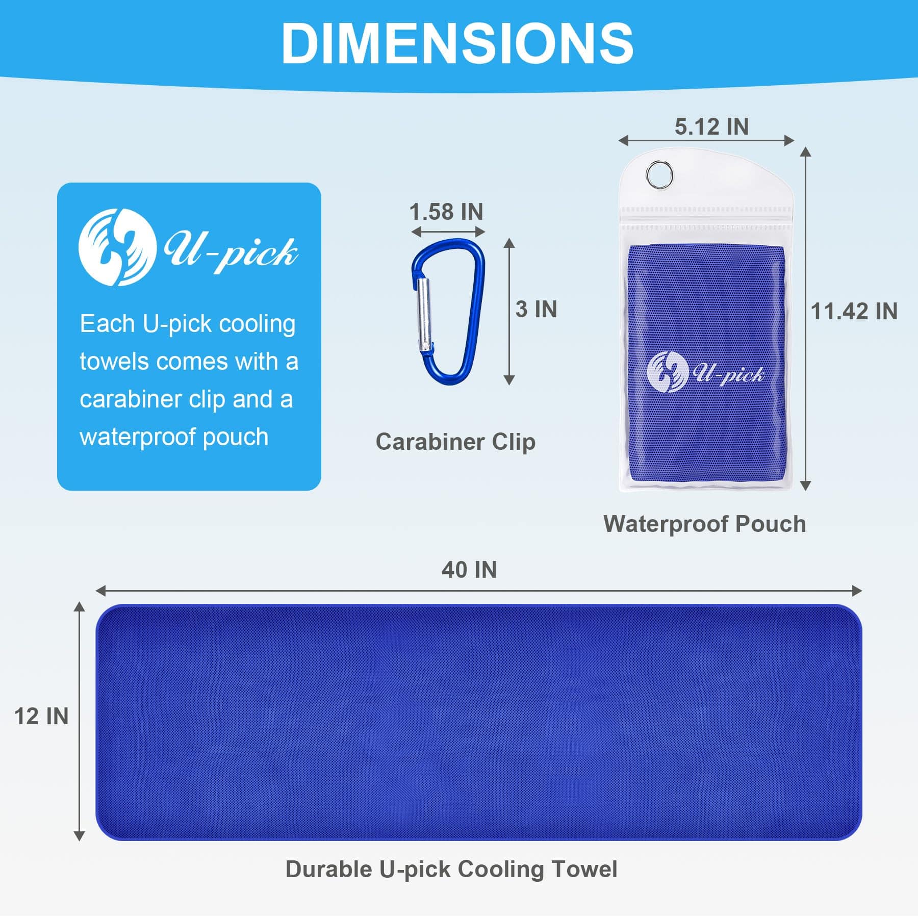 Las toallas de enfriamiento U-pick son la solución perfecta para mantenerte fresco y cómodo en climas calurosos. Hechas de 55% nailon y 45% poliéster, estas toallas son altamente transpirables y absorbentes, lo que las hace ideales para usar en el gimnasio, durante el yoga, en partidos de softball, béisbol u otros deportes, así como en actividades al aire libre como acampar, hacer senderismo, escalar o navegar. La tela de enfriamiento única hace que la toalla se enfríe instantáneamente y puede durar hasta 3 horas en condiciones normales. Además, la bolsa impermeable y los mosquetones multiusos facilitan el almacenamiento y transporte de la toalla. Ésta se puede llevar en mochilas, bolsas de gimnasio o incluso engancharse a llaveros, botellas de agua u otros equipos. Además, la garantía de satisfacción del 100% te brinda la tranquilidad de que si no estás completamente satisfecho con el producto, puedes devolverlo sin problemas. ¡Disfruta de la frescura y comodidad en todo momento con las toallas de enfriamiento U-pick!