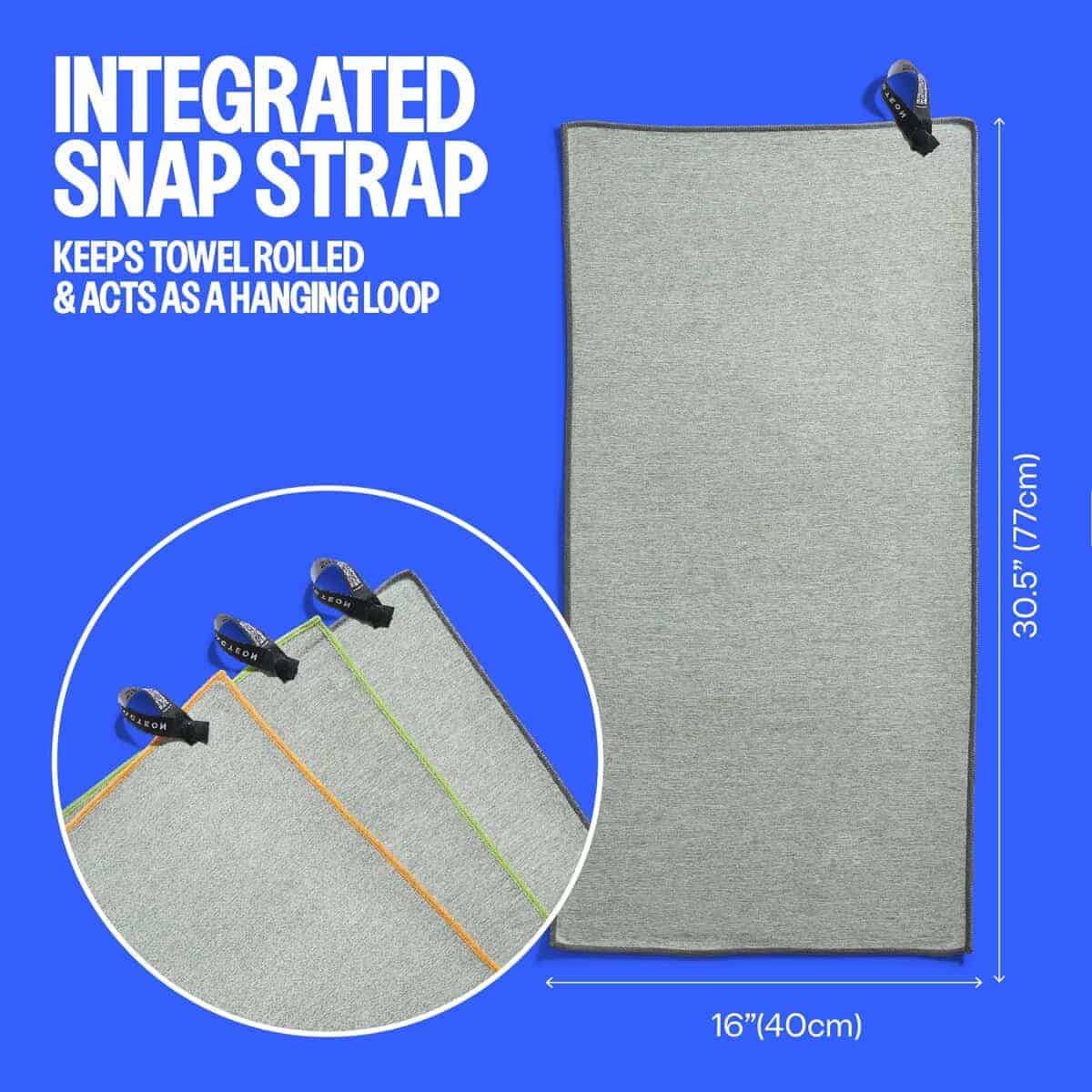 3. ULTRA COMPACTO, LIGERO, MANTÉNGASE LIMPIO CON EL LAZO COLGANTE: Con un cierre de correa de presión integrado que también funciona como un lazo colgante sobre la puerta, su mochila o botella. la toalla fina grande se enrolla en un tamaño de viaje compacto. Perfecto para aquellos que viajan ligero.