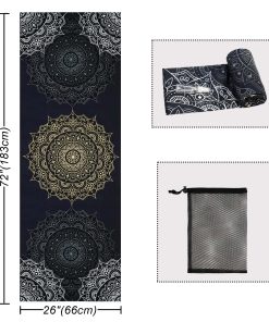 Toalla de Yoga con Bolsillos en las Esquinas -Mandala Negro