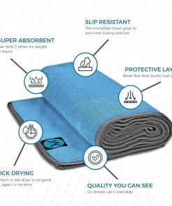 Toalla de Yoga de Microfibra Antideslizante -Azul/Grises