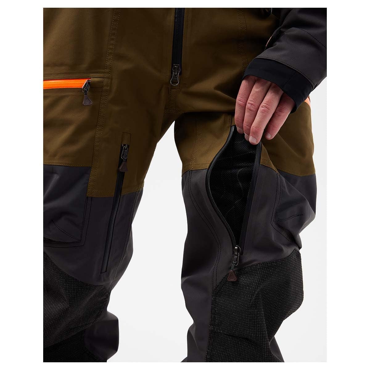 El monosuit Macer V2 ofrece un corte atlético más ajustado, cuenta con una carcasa impermeable Sympatex 45,000 de 2 capas y ofrece un montón de elasticidad para mayor destreza. El traje utiliza nuestra tela Cordura ultra duradera como refuerzo en el asiento del monosuit, mientras Armortex Kevlar refuerza los puños del tobillo y la pantorrilla interior. Todas las cremalleras son completamente impermeables con YKK Aquaguard y todas las costuras están doblemente cosidas. También hemos instalado respiraderos con cremallera frontal compatibles con mochilas en el pecho para garantizar una regulación óptima de la temperatura. Cinco bolsillos externos ofrecen mucho espacio de carga y un pañuelo de gamuza elástico para gafas en el bolsillo frontal izquierdo para limpiar sus lentes en los días intensos.