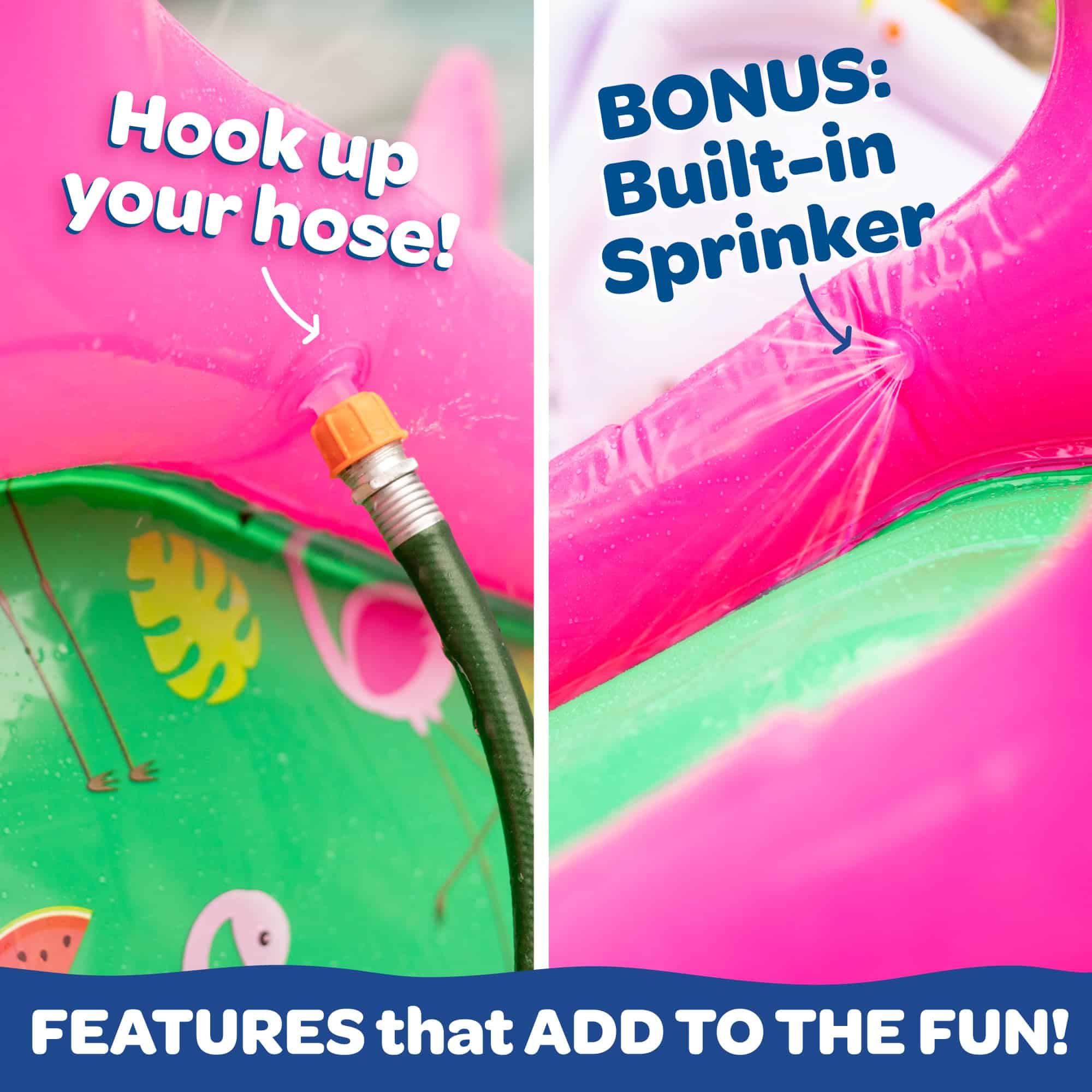 3. ROCIADORES INCORPORADOS: El tobogán también viene equipado con rociadores de agua integrados que rocían agua mientras te deslizas, lo que hace que la experiencia sea aún más emocionante y refrescante.