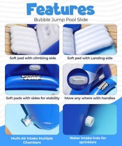 El tobogán para piscina BubbleJump es la mejor inversión que puede hacer para su familia. No es solo un tobogán acuático para la piscina, es una fuente de alegría, risas y recuerdos inolvidables. El tobogán BubbleJump para la piscina sobre tierra seguramente convertirá su piscina en el lugar más genial del vecindario. Prepárese para un verano lleno de diversión y risas con los toboganes acuáticos para niños y adultos BubbleJump.