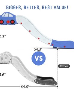 Tobogán para Niños para Cama Sofá Tobogán para Escaleras Tobogán Extendido y Ensanchado Plástico para Interiores Fácil de Armar y Guardar Coche Azul Plus. Más Ancho. Más Suave. Más Seguro: 30% más ancho que el estándar, nuestro tobogán para niños ofrece un deslizamiento suave y cómodo para dos niños, con bordes resistentes a los arañazos para una diversión interactiva segura. Estabilidad Inigualable: Nuestro tobogán de sofá cuenta con almohadillas de silicona antideslizantes, asegurando que tu pequeño juegue de forma segura sin resbalones ni caídas. Con la calificación de estabilidad más alta en el mercado, puedes confiar en que este tobogán para escaleras ofrece una seguridad y tranquilidad inigualables para el tiempo de juego de tu hijo. Diseño Adorable con Temática de Coche: Diseñado en forma de un carro de dibujos animados lindo, este tobogán para niños hace que el tiempo de juego sea emocionante mientras los niños sienten la emoción de competir. Almacenamiento y Ensamblaje sin Esfuerzo: El tamaño compacto de nuestro tobogán para escaleras facilita el almacenamiento, y el ensamblaje es un juego de niños, resolviendo todas tus preocupaciones relacionadas con el espacio. Calidad Premium: Fabricado con material HDPE de primera calidad, este tobogán es tan resistente como divertido. Este tobogán para niños soporta hasta 280 libras, atendiendo tanto a niños como a adultos. Certificado como seguro por la CPC, este encantador diseño con forma de coche garantiza diversión infinita para tus pequeños. Soporte Postventa: Disfruta de la tranquilidad con nuestro servicio al cliente dedicado, que ofrece asistencia rápida y una garantía integral para asegurar tu satisfacción y la longevidad del producto.