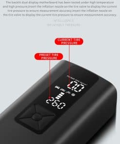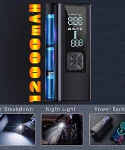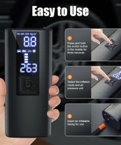 Inflador de neumáticos portátil TOBZMONO, el compañero perfecto para mantener sus neumáticos inflados y listos para la carretera en todo momento. Con un potente motor y una batería de larga duración, este compresor de aire para neumáticos es adecuado para una variedad de vehículos, desde automóviles hasta bicicletas, pelotas y más. Su diseño compacto y ligero lo convierte en una herramienta portátil y conveniente para usar en casa, en el trabajo o en la carretera. El inflador de neumáticos TOBZMONO cuenta con una manguera larga que permite un inflado manos libres sin necesidad de ajustar el ángulo del neumático. Con una pantalla LED y linterna incorporada, es fácil de usar incluso en la oscuridad. Además, el inflador se apaga automáticamente cuando se alcanza la presión de neumático deseada, evitando el riesgo de sobreinflado. Fabricado con materiales de alta calidad y con un diseño seguro, este compresor de aire para neumáticos garantiza una experiencia de inflado segura y eficiente. Incluye una bolsa de almacenamiento que también funciona como banco de energía, para que pueda inflar sus neumáticos y cargar sus dispositivos electrónicos mientras está en movimiento. Ya sea que sea un conductor experimentado o un principiante, el inflador de neumáticos portátil TOBZMONO es una herramienta confiable que le brinda tranquilidad en la carretera. ¡Adquiera el suyo hoy y manténgase listo para cualquier emergencia de neumáticos!