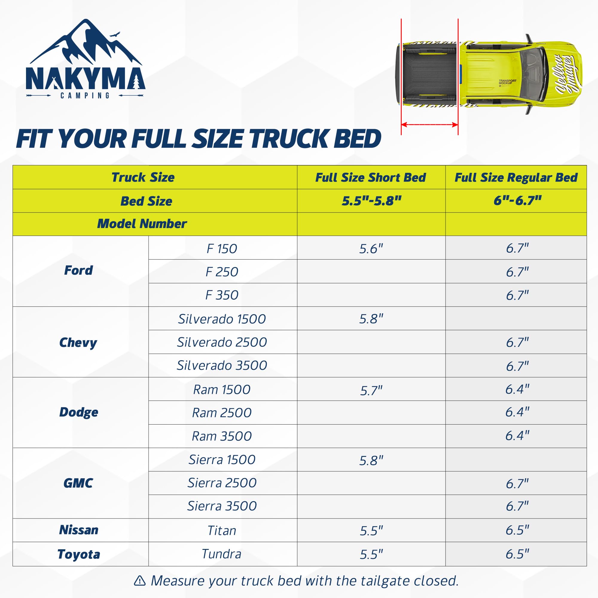5. Compatibilidad Tienda de cama de camión diseñada específicamente para camioneta pickup con cama de 6′-6.7′. Se adapta a la mayoría de las camionetas de cama tamaño completo.