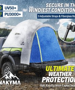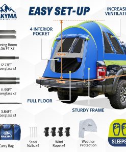 4. Fácil de instalar Nuestras tiendas para cama de camión son portátiles, lo que le ahorra tiempo, puede completar la instalación en 5 a 10 minutos. Incluye todos los herrajes y accesorios necesarios. La instrucción de montaje y desmontaje está incluida para un montaje rápido y rápido.