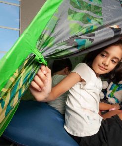 Cuando instalamos este Toldo de Cama de Jurassic Park Gates, escuchamos las épicas melodías de la música de John Williams. Este toldo pop-up de fácil montaje transforma cualquier aburrida habitación infantil en una que tiene 65 millones de años de antigüedad. Con correas elásticas que lo sujetan a un colchón individual, es una forma especialmente ingeniosa de brindar un poco de privacidad a los niños que comparten habitación. Es ideal para padres que necesitan limitar la entrada sensorial de sus hijos y, incidentalmente, también ayuda a contener las figuras de acción de dinosaurios.