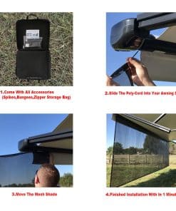 1. La malla transpirable bloquea aproximadamente el 86% de la luz solar pero no su vista, bajando drásticamente la temperatura y creando un espacio adicional en su RV.