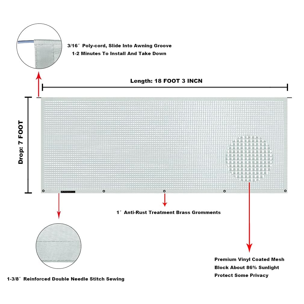 5. CÓMO PEDIRLO – La medida real de la tela terminada de 7’X18’3» es de 7 pies de largo por 18 pies y 3 pulgadas de largo, es apta para un toldo de 19 pies para caravana RV (la medición del centro de brazo a centro de brazo del toldo de caravana RV), y se adapta a la mayoría de las marcas de toldos como Dometic (A&E), Carefree, Lippert, Fiamma, Solera, etc. No es apta para Toldo Girard.