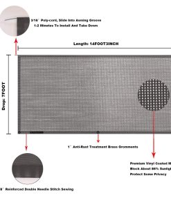 1. La malla transpirable bloquea aproximadamente el 86% de la luz solar pero no tu vista, reduciendo drásticamente la temperatura y creando una habitación adicional en tu RV.