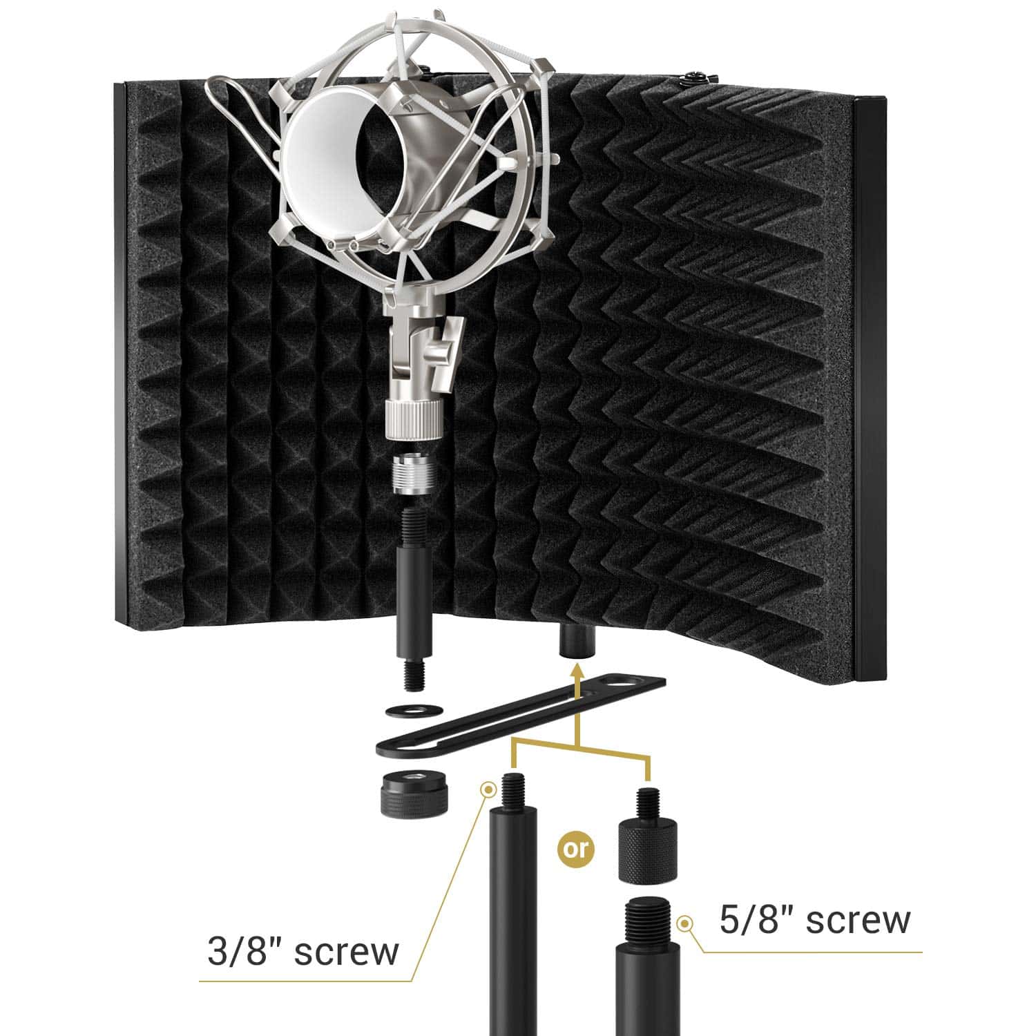 4. Versatilidad: El escudo de aislamiento de micrófono se puede fijar en un escritorio o mesa, y también se puede montar en un soporte de micrófono. Ideal para grabaciones vocales/acústicas profesionales y cabinas de sonido para podcast.