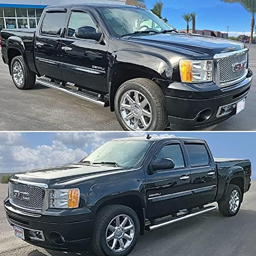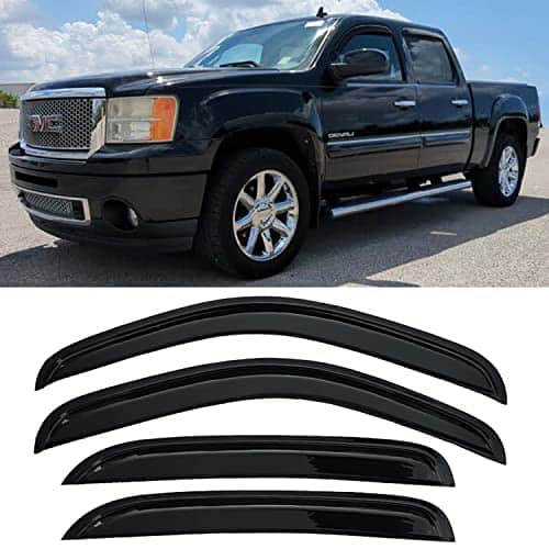 Fitment:2007-2013 Chevy Avalanche 2007-2013 Chevy Suburban 1500/2500 2007-2013 GMC Yukon XL 1500/2500 (Fit XL Model Only,Not Fit Regular Yukon) 2007-2013 Chevy Silverado/GMC Sierra Crew Cab New Body Style Only (Not Fit Classic Body or Other Cab Models) Note:Crew Cab model has 2 full size front doors and 2 full size rear doors that open in the same direction.Please check the above picture for more details about the cab difference. Item-offered: 4pcs vent shade window visors with 3M Double-Sided Tapes (Installation instruction is not included,please check the sample installation picture above for reference) Style: Outside Mount Style (Stick on to the door & above the windows.Not In-Channel Style) Position: 4pcs for Front & Rear (Driver & Passenger) Visors Material: Reinforced Acrylic Color: Black Installation: Direct Tape-On Design. No Cutting or Drilling Required, Here is a sample installation instruction of window visor for your reference. Item’s-condition-function: 100% Brand new in box. Fully window protected from sun shade, wind, rain, snow deflector. Help reduce heat buildup in park vehicles by allowing air in when partially open. Long lasting material designed to withstand the rigors of the elements. Make it possible to leave the windows down a few inches to get fresh air even on rainy days. Comes With 3M Automotive-Grade Double-Sided Tapes.Easy Installation. Dramatically Improve Styling & Appearance.