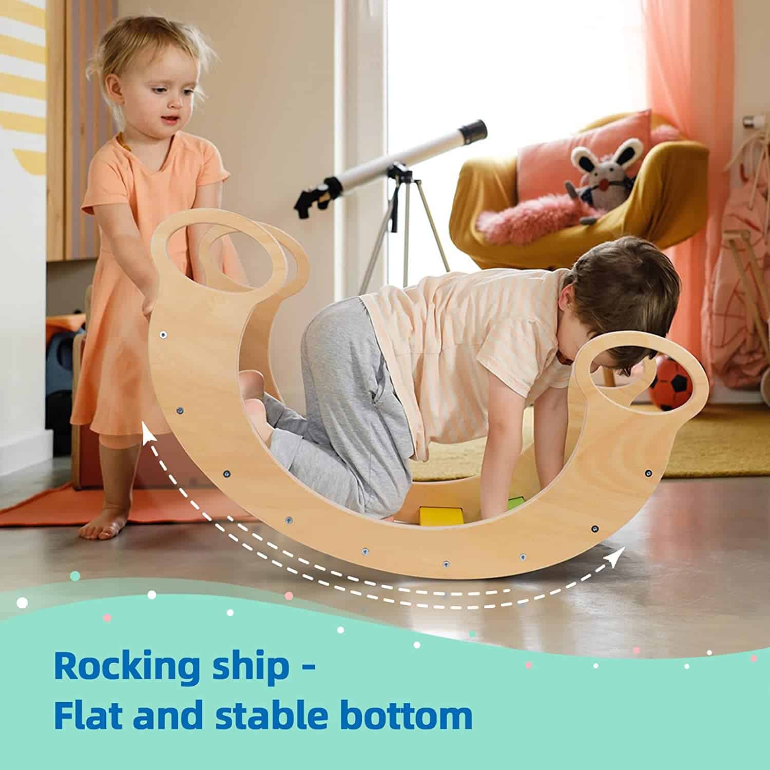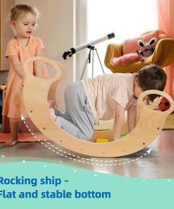 1. BALANCEO ARCO IRIS – Con 9 tableros lisos pintados hermosamente, nuestro balanceo arco iris se ve realmente increíble. La pintura a base de agua cumple con todos los estándares de seguridad de EE. UU. 2. Debido a su versatilidad, el balanceo de madera para niños pequeños permite que los niños construyan sus propias escenas de juego imaginativas. Se puede utilizar como un balanceo, balancín, arco de balanceo, triángulo de escalada, una tienda de productos y como un marco montessori de escalada para niños. 3. El balancín trepador, balancín es un juguete innovador que fomenta un juego emocionante, imaginativo y divertido y ayuda a los niños a desarrollar habilidades motoras gruesas. El conjunto de balancín trepador de interior con tobogán libera de manera segura la energía y creatividad ilimitadas de un niño. 4. Montado: 29 pulgadas de largo, 15 pulgadas de alto, 15 pulgadas de ancho. El equilibrio perfecto entre fuerza y peso. 5. Los juguetes de escalada para niños pequeños están hechos de madera de alta calidad, garantizando la seguridad del producto. Además, la escalera tiene esquinas redondeadas y una superficie lisa que no cortará ni dañará la piel de un niño.