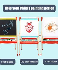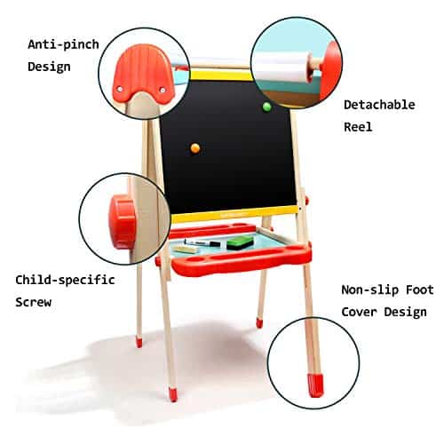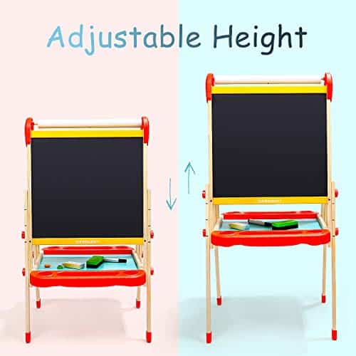 TOP BRIGHT Caballete para Niños – Caballete de Madera Ajustable de Doble Cara para Niños de 2 a 6 años con Almacenamiento