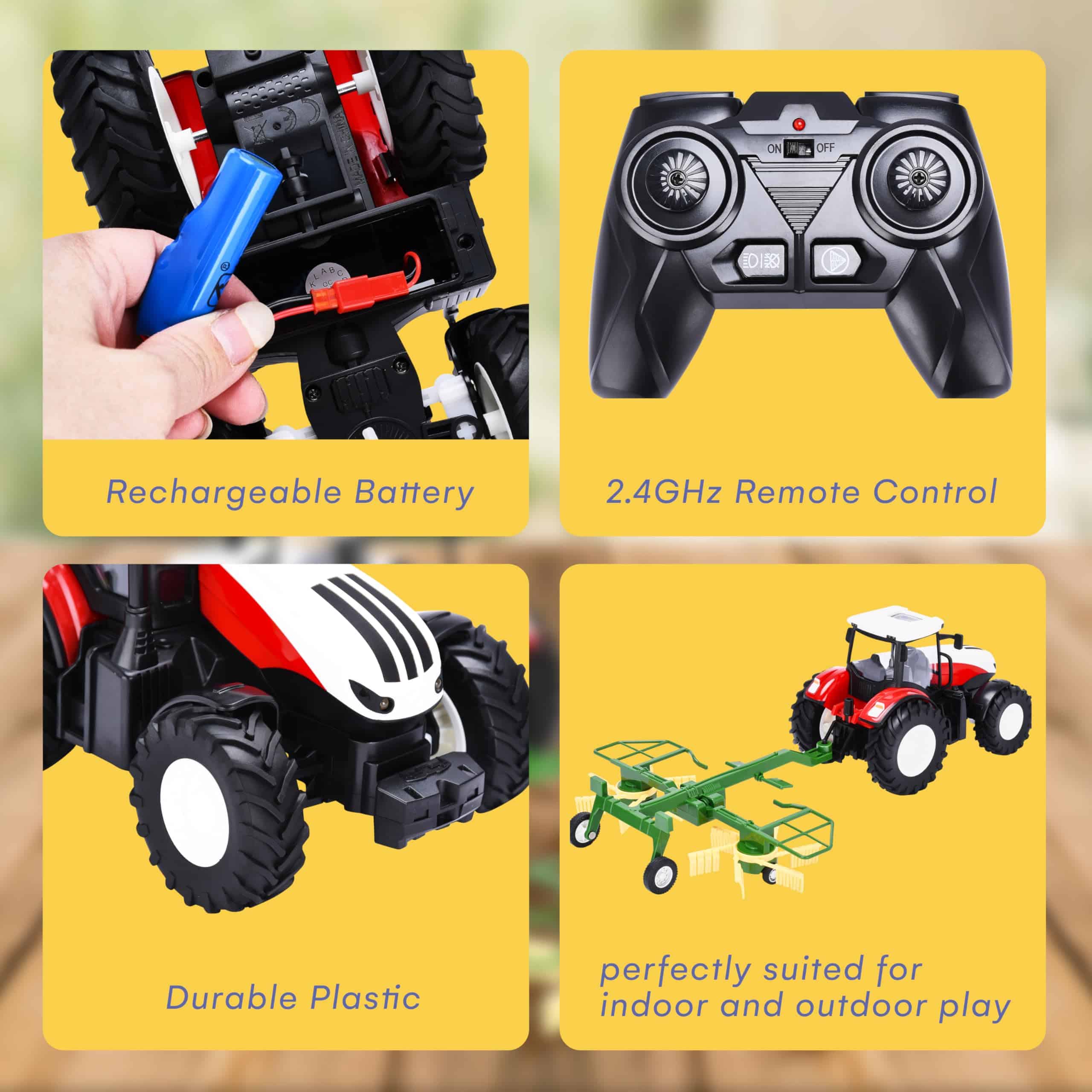 3. OPERACIÓN SIN ESFUERZO: Nuestro tractor controlado por control remoto cuenta con un diseño de plástico duradero, control de 2.4GHz y una batería recargable para un funcionamiento suave. Es el tractor de juguete ideal para niños de 3 a 5 años que aman los camiones de juguete.
