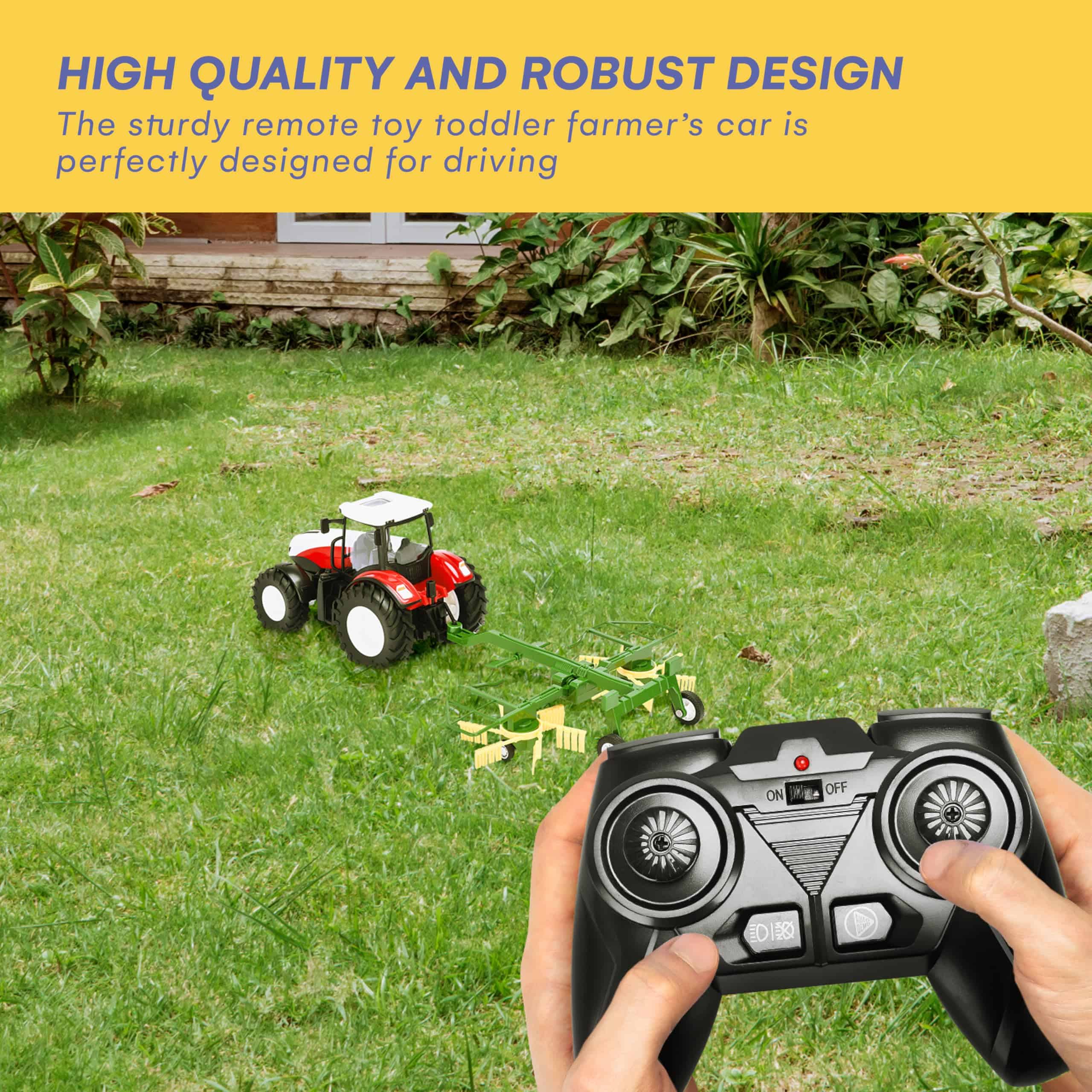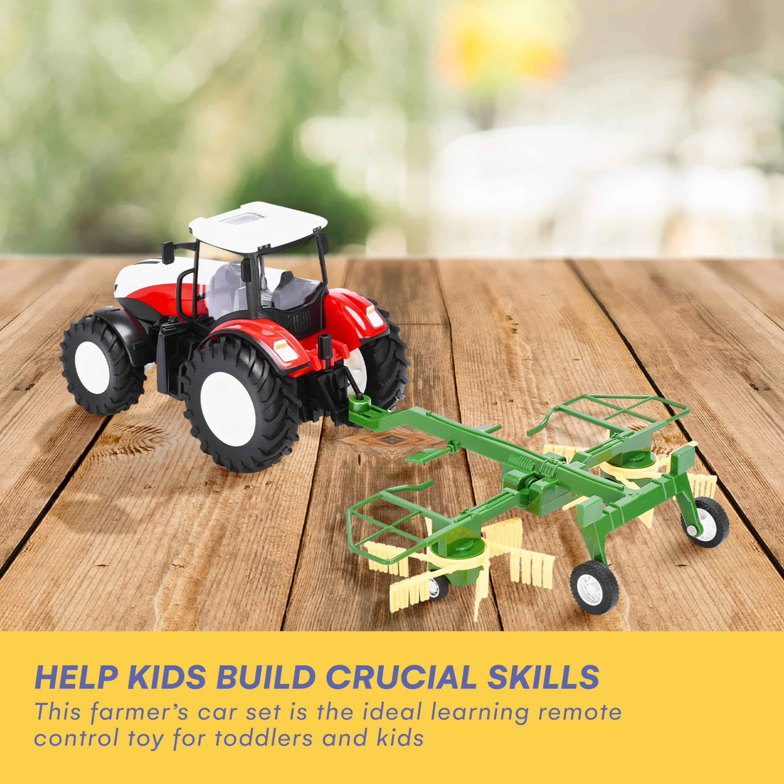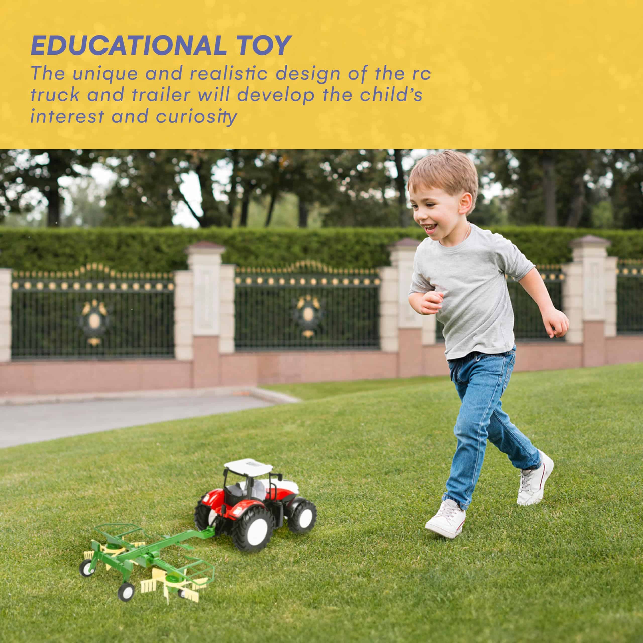 2. TIEMPO DE JUEGO REALISTA: Nuestro set de juguete de tractor de granja incluye un juguete de remolque de tractor y otros accesorios, ofreciendo una experiencia de juego realista para jóvenes entusiastas de los juguetes de granja. Es el tractor de control remoto perfecto para niños pequeños que aman jugar con tractores a control remoto.