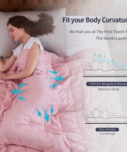 Topcee Weighted Blanket es una manta pesada diseñada para mejorar el sueño y brindar comodidad durante todo el año. Fabricada con material de microfibra suave y transpirable, esta manta proporciona una sensación de frescor en verano y calor transpirable en invierno. Las cuentas de vidrio no tóxicas y hipoalergénicas de alta calidad garantizan un peso uniformemente distribuido en toda la manta.