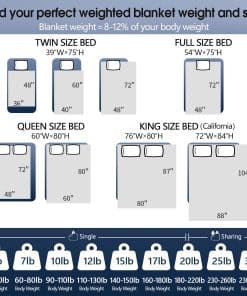 2. PESO/TAMAÑO RECOMENDADO – Por favor, elija el 8%-12% de su peso corporal, lo que le ayudará a dormir mejor y más rápido. Recomendamos 48»x72» para cama individual, 60»x80» para cama matrimonial. Esta manta ponderada no solo puede utilizarse para dormir, sino también para leer, relajarse o meditar.