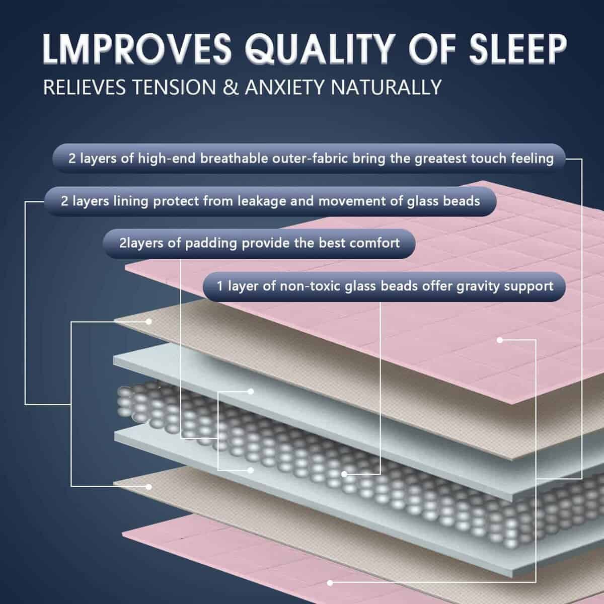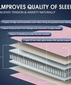 3. Tecnología de posicionamiento preciso de cuentas de vidrio – Hemos observado que el mayor problema con las mantas pesadas es que a medida que las cuentas se mueven en la manta, el peso se vuelve cada vez más desigual. Para solucionar este problema, diseñamos una herramienta profesional para llenar las cuentas de vidrio. Esta herramienta hace que las cuentas se distribuyan de manera uniforme en la manta. Al mismo tiempo, utilizamos hilo de coser de alta resistencia, que es muy fuerte para garantizar que las cuentas no se trasladen de una zona a otra durante el uso de la manta.