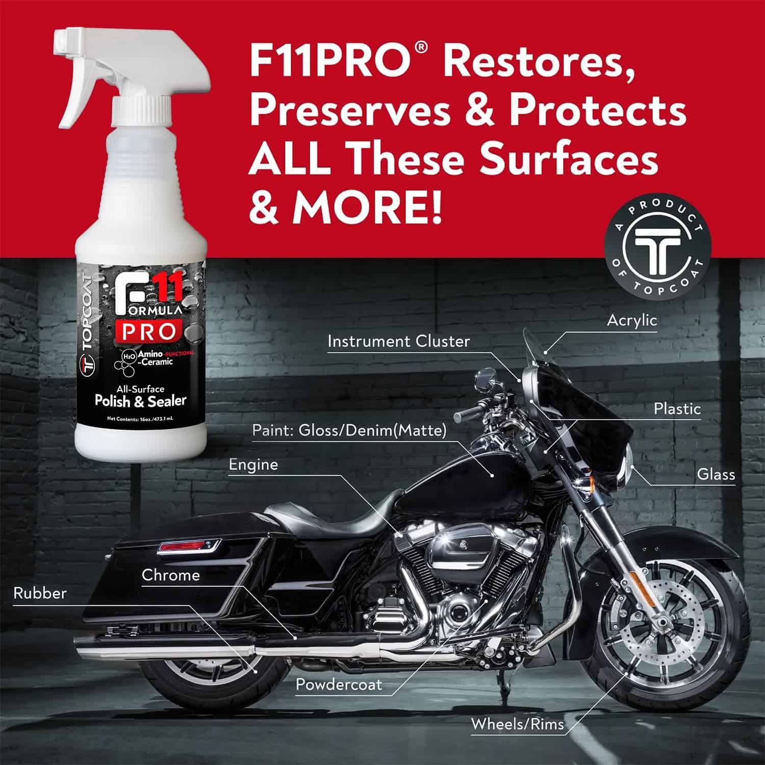 1. Limpiador y sellador de superficies: ¡Deshazte de múltiples productos para el detallado de autos y conviértete en un profesional! F11PRO limpia, restaura, protege y sella para crear una barrera hidrofóbica que facilita la limpieza y el mantenimiento. Protege tu inversión durante años con F11PRO.