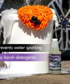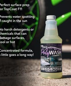 TopCoat PolyWash Concentrado es un jabón para lavado de autos único que combina poder de limpieza con una capa protectora hidrofóbica que evita las manchas de agua. Esta fórmula pH-neutra es suave con las superficies pero efectiva para eliminar la suciedad y la suciedad sin dañar la pintura. Con más de 10 galones de jabón para autos en una sola botella de 16 oz, PolyWash es un valor excepcional para mantener limpios y protegidos tus vehículos. Su versatilidad lo hace ideal para autos, camiones, motocicletas, RVs, casas rodantes y más. Ya sea que lo uses en un balde de agua o en un cañón de espuma, PolyWash hace que lavar tu vehículo sea fácil y efectivo. Fabricado en los Estados Unidos, puedes confiar en la calidad y rendimiento de TopCoat PolyWash para preparar la superficie de tu vehículo antes de aplicar cualquier revestimiento TopCoat como F11 o F11PRO.