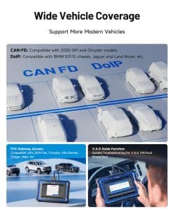 3. AMPLIA COBERTURA DE VEHÍCULOS: Soporta los protocolos CAN FD y DoIP de vanguardia, lo que lo hace compatible con vehículos modernos, incluidos GM & Chrysler 2020+, BMW E/F/G, Jaguar, Land Rover y más. Bypassa la FCA Secure Gateway para mantenerse al día con los modelos más nuevos de Chrysler, Jeep, Fiat y otros. Además, la función guiada V.A.G simplifica los procedimientos de diagnóstico y mejora la eficiencia para Volkswagen, Au-di y sus marcas afiliadas.