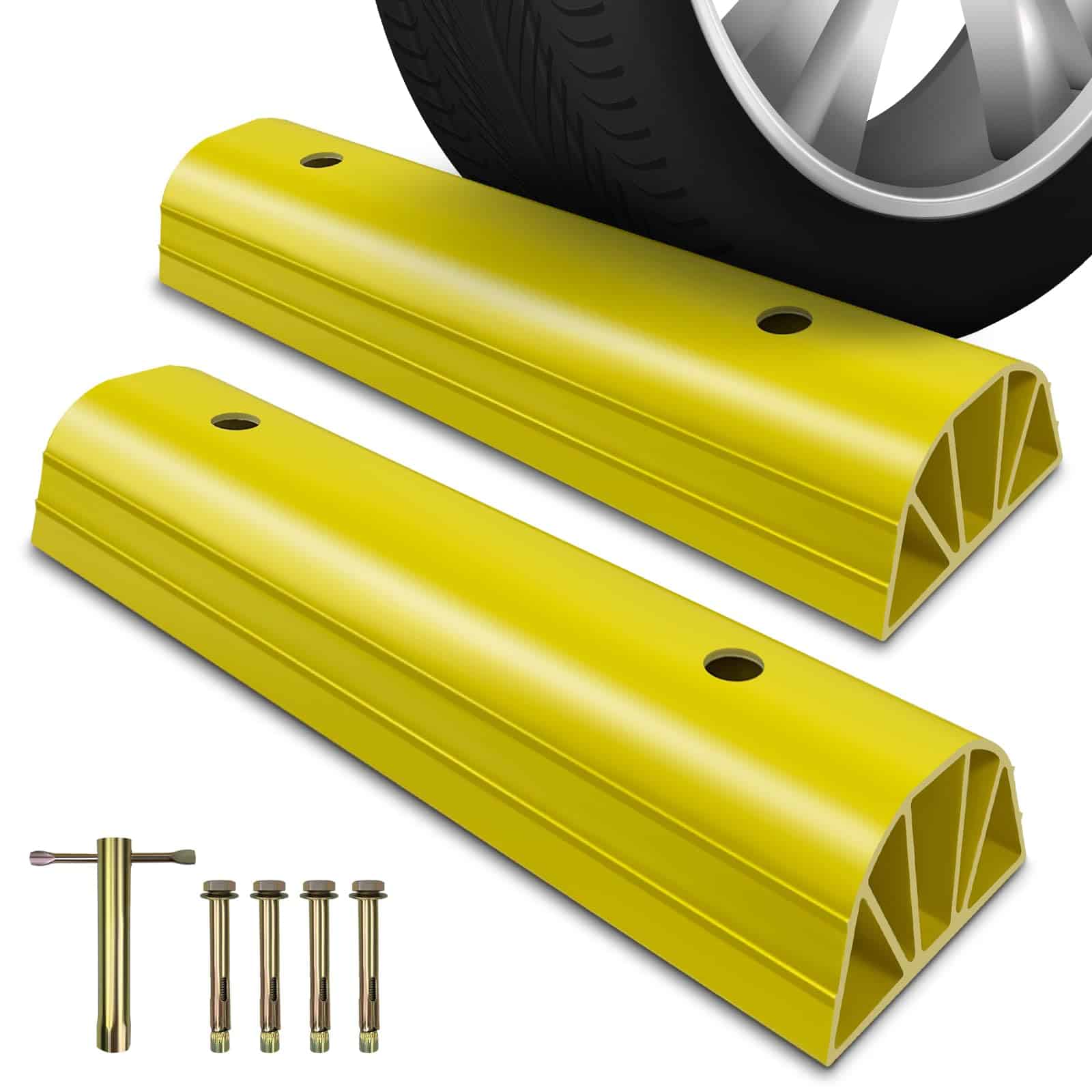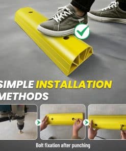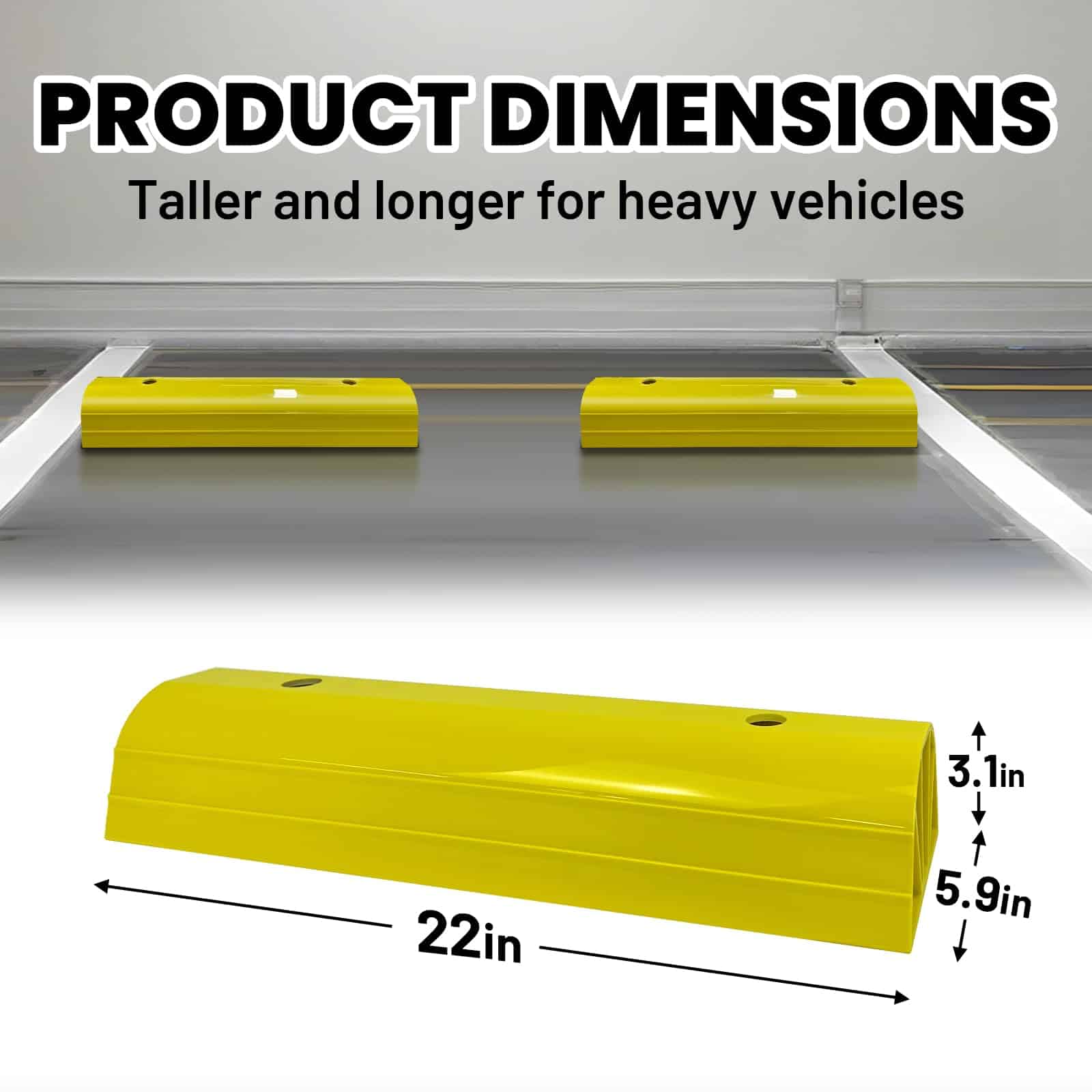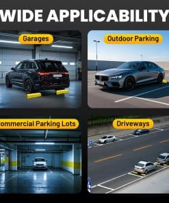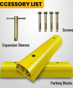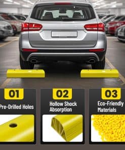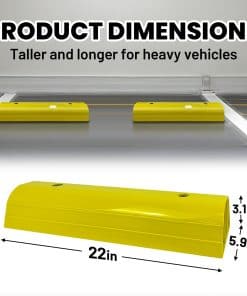 Tope de Estacionamiento ROBLOCK de 22″ para Casa y Exterior, Topes de Garaje Resistentes para Proteger su Vehículo, Ayudas de Estacionamiento para Conductores Nuevos, Topes para Ruedas de Coches, Vans, Remolques, 2 Paquetes, Amarillo. La altura de 3.1 pulgadas garantiza que no rodará accidentalmente sobre el bloque de estacionamiento, permitiendo a los conductores novatos estacionar con precisión y evitando golpear las paredes del garaje. Su longitud de 22 pulgadas se adapta fácilmente a la mayoría de los tamaños de neumáticos ocupando un espacio mínimo en el suelo. El color amarillo brillante mejora la visibilidad, facilitando su identificación incluso en condiciones de poca luz, lo que reduce la posibilidad de tropezar. Los bordes redondeados reducen el riesgo de lesiones durante encuentros accidentales con las ayudas de estacionamiento. Los agujeros pre-perforados permiten una instalación sencilla. Viene con 4 tornillos en el set. Nuestro tope de estacionamiento está hecho de materiales ecológicos que no emiten olores desagradables. Es lo suficientemente resistente para soportar impactos de vehículos sin romperse fácilmente, siendo apto para vehículos pesados como autocaravanas, remolques y camiones. El tope de estacionamiento para garaje ROBLOCK resistente a la intemperie se desempeña bien en entornos exteriores, ya sea en un garaje, entrada o en otros espacios de estacionamiento al aire libre. Si tiene alguna pregunta sobre los topes de estacionamiento para garaje, estaremos encantados de ayudar.
