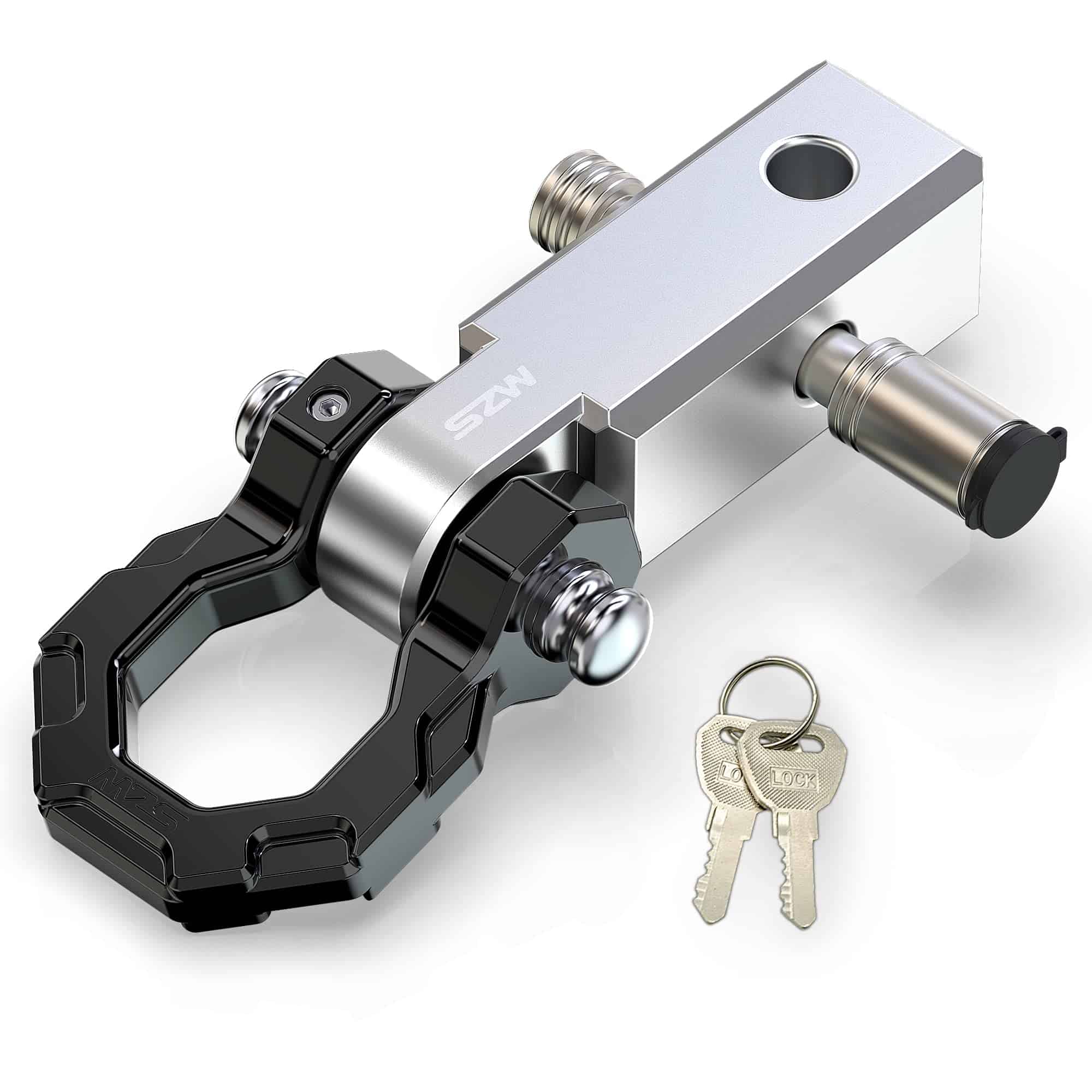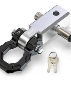 5. Kit completo: Tope de Malacate de Goma Negro + enganche de gancho de 2″, pasador de cierre de enganche de remolque de 5/8″ con llaves y gancho en D de 3/4″ con arandelas, previene el robo y los ruidos molestos.
