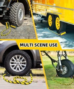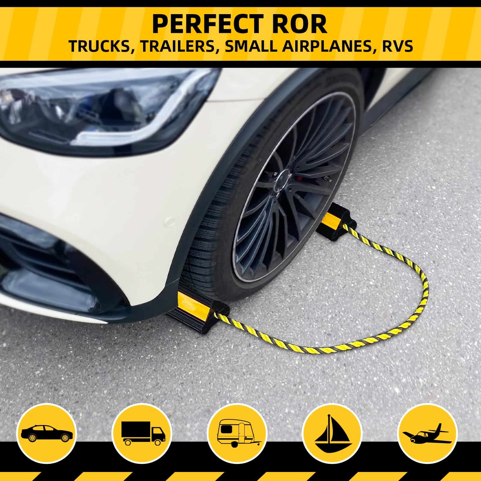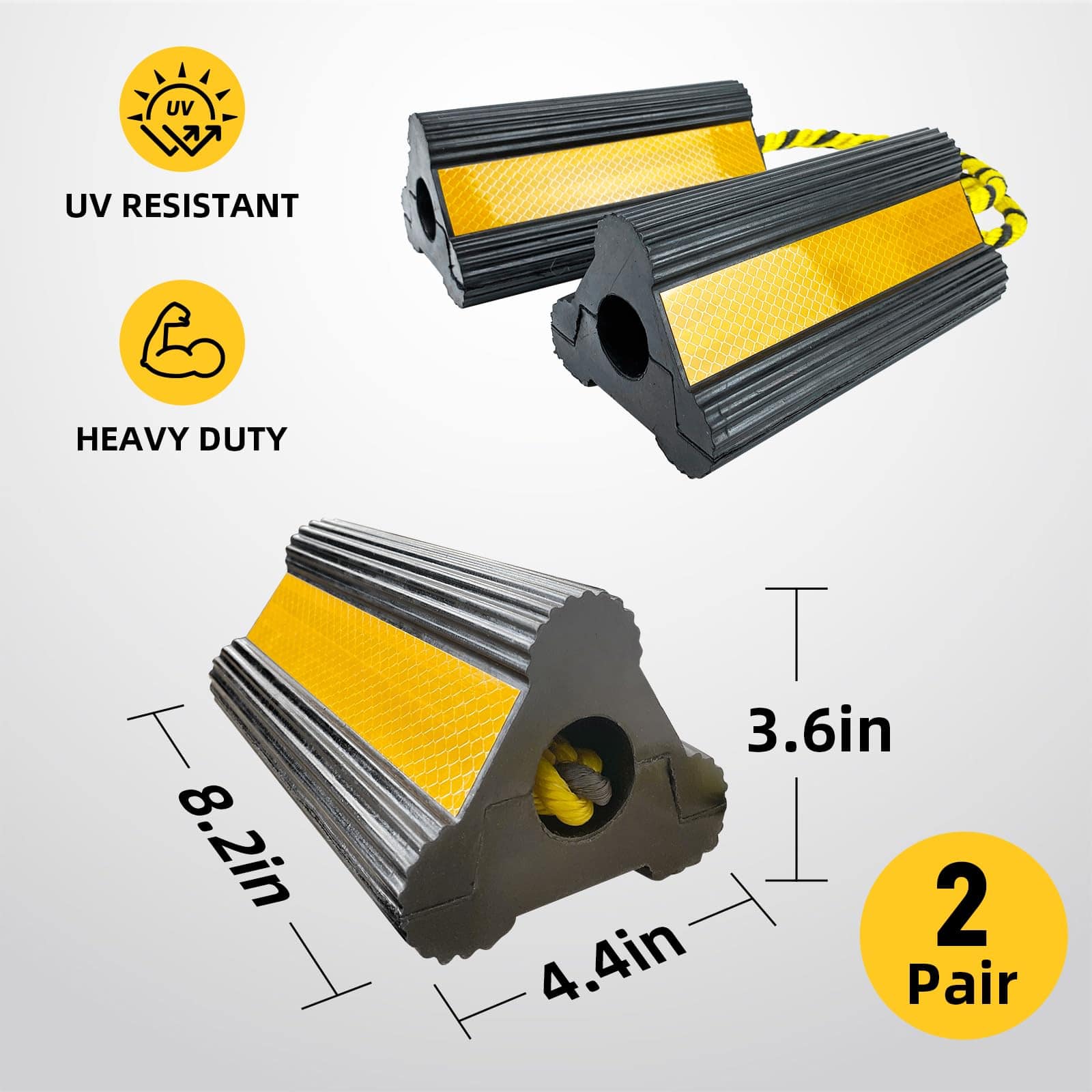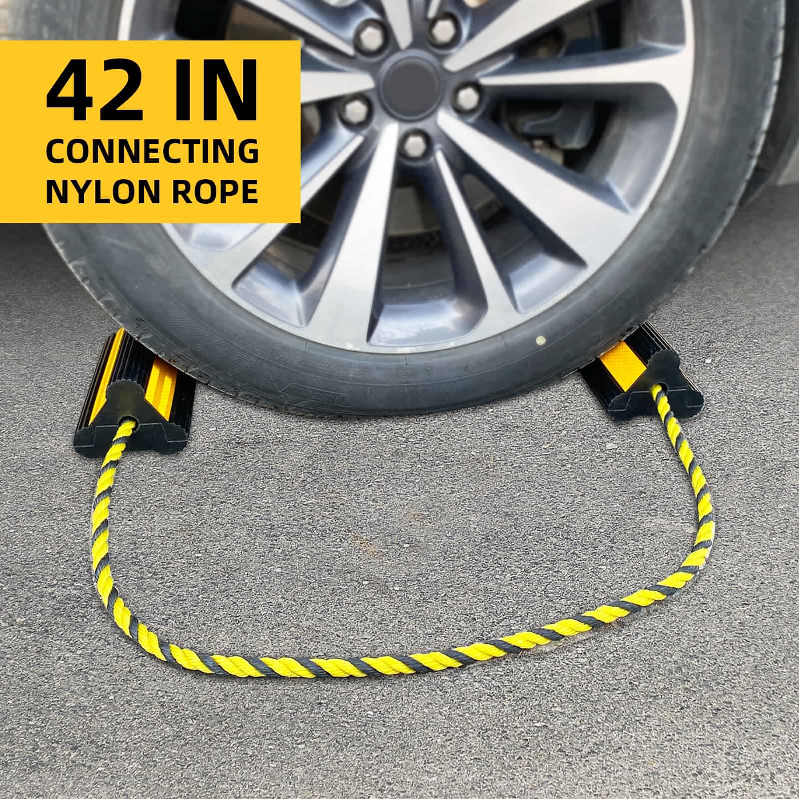 Topes de rueda de alta calidad: Este Bloque Antideslizante para Coche está fabricado con construcción de goma premium, no se agrieta fácilmente y es duradero para un uso prolongado. Para un rendimiento fiable en cualquier clima. Especificaciones: TAMAÑO: 4.1″ x 7.8″ x 3.9″; Peso: 6.18 Lbs. Paquete Incluido: 4 piezas. Color Visible: Son lo suficientemente grandes para proporcionar un soporte sólido. Las rayas amarillas claras también mejoran la visibilidad.