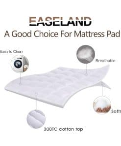 El topper de colchón EASELAND para cama individual tamaño Twin es la solución perfecta para añadir comodidad adicional a su colchón. Con un tamaño de 39×75 pulgadas y un bolsillo profundo de 21 pulgadas, este protector se adapta fácilmente a su colchón sin importar su grosor. Con 30 oz de fibra alternativa hueca y elástica, este topper añadirá suavidad a su colchón firme, brindándole una experiencia de descanso más cómoda. La superficie de algodón 300TC absorberá el sudor, haciéndola transpirable y manteniéndolo fresco durante la noche. Además, el relleno alternativo es amigable con la piel y se mantendrá en su lugar gracias al diseño de sábana ajustable con tela elástica de 130 GSM de una sola vía. Este topper es lavable a máquina, lo que facilita su limpieza y mantenimiento. Disfrute de una noche de sueño cómoda y sin preocupaciones con el topper de colchón EASELAND para cama individual.