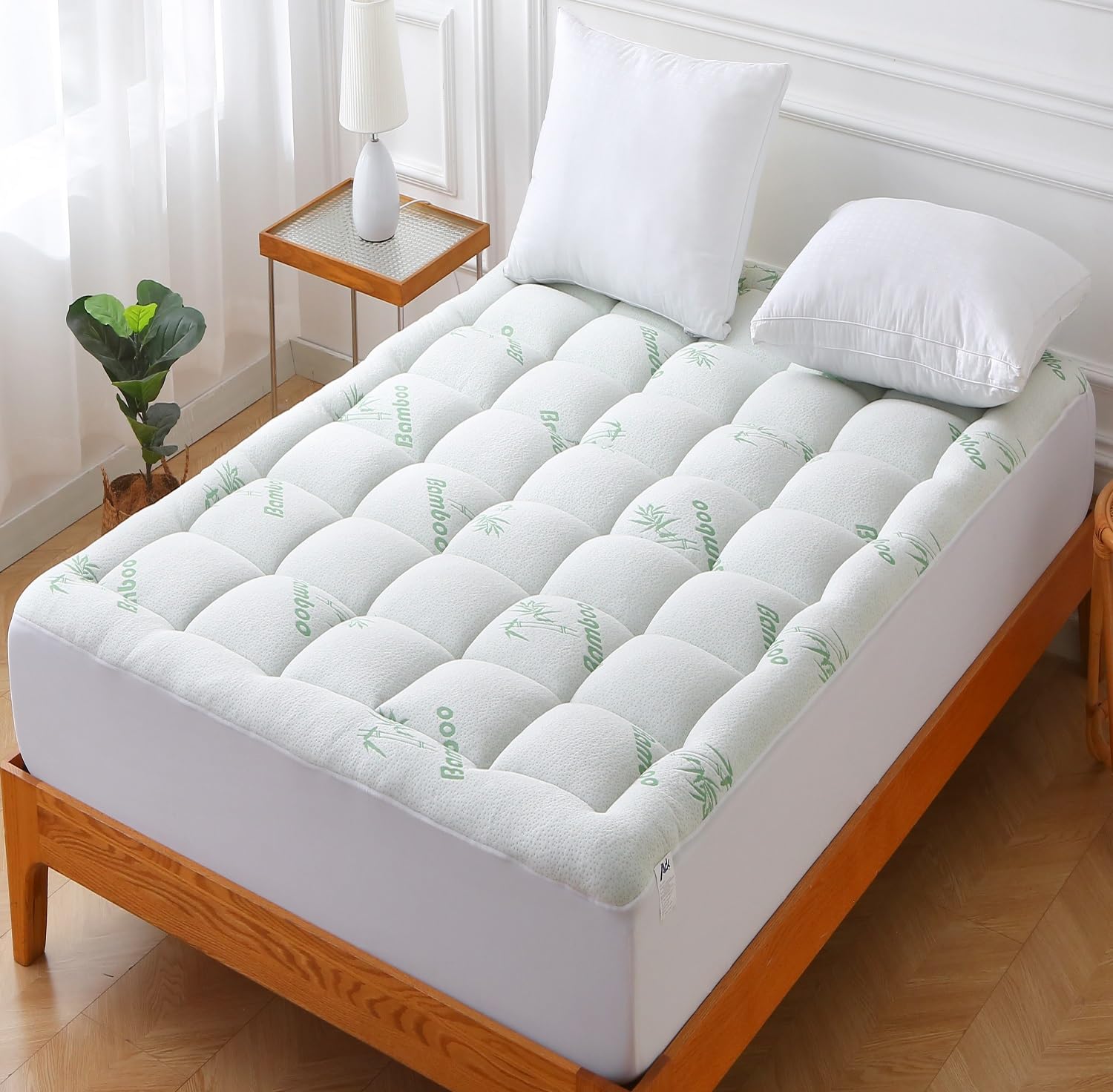 El topper de colchón completo de viscosa derivada de bambú con almohadilla extra gruesa refrigerante para colchones de 8 a 20 pulgadas de profundidad es la solución perfecta para mejorar su sueño y prolongar la vida útil de su colchón. Con una construcción premium y materiales de alta calidad, este topper de colchón ofrece una capa adicional de comodidad y soporte. La tela de bambú es suave al tacto y transpirable, lo que garantiza un sueño fresco y seco durante toda la noche. Además, su diseño extra profundo con bolsillos elásticos se adapta a cualquier tipo de colchón, proporcionando una capa protectora contra el desgaste diario. Con propiedades hipoalergénicas y capacidad de absorción de humedad, este topper de colchón de bambú no solo mejora la vida útil de su colchón, sino que también crea un entorno de sueño más saludable. Disfrute de un sueño reparador y cómodo con este topper de colchón de viscosa de bambú de alta calidad.