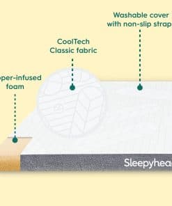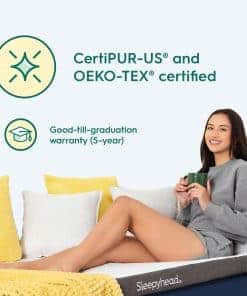 2. COOL & COMFORTABLE: Measuring 38″ wide by 75″ long, the Sleepyhead Mattress Topper is copper infused, offering a superior cooling effect for a comfortable sleep. With advanced cooling technology, it’s perfect for hot sleepers. Additionally, it can help support pressure on your spine and provide essential support for your back, helping to ensure a comfortable and refreshing sleep. Specifically designed as a college dorm mattress topper, it is an essential luxury Twin dorm mattress topper for college students.