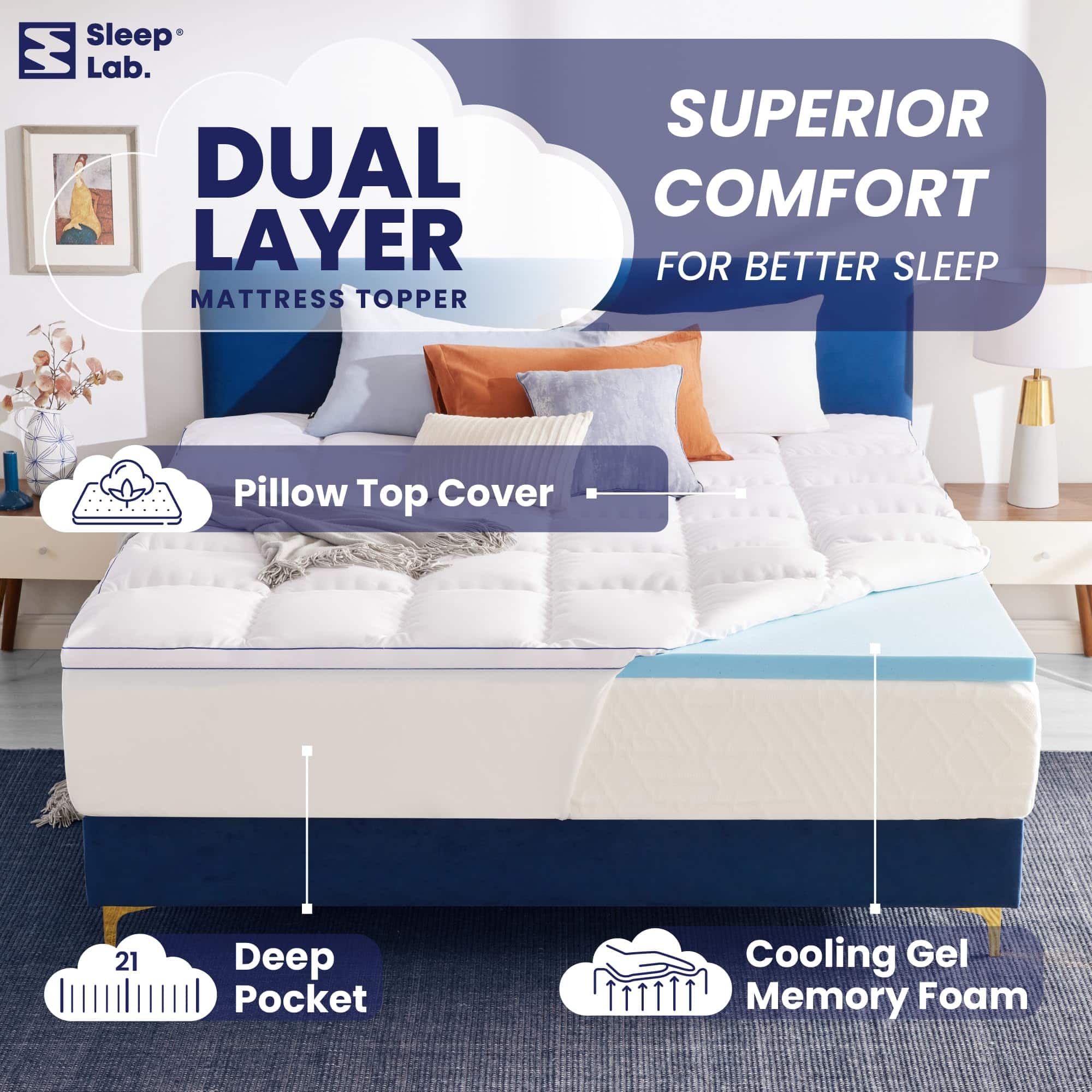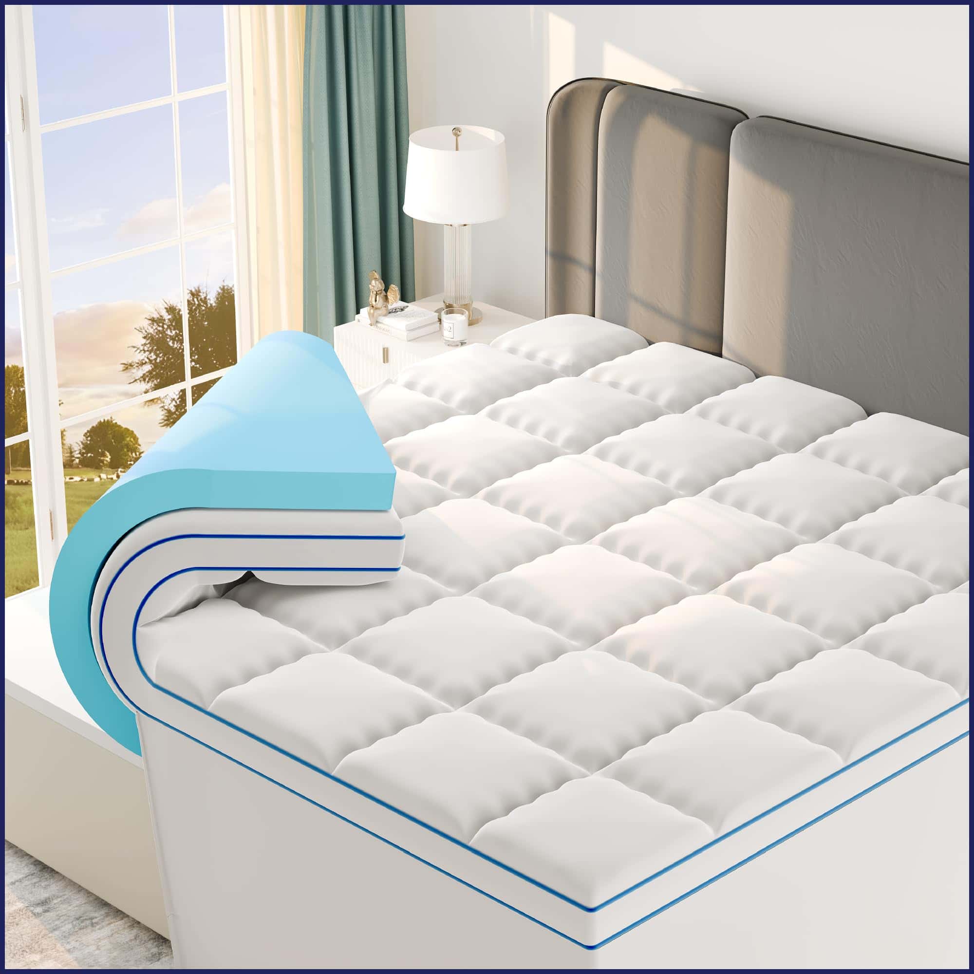 1. Confort y Calidad de Lujo Experimenta el máximo confort con nuestro topper de 4 pulgadas de doble capa, que cuenta con 2 pulgadas de espuma de memoria en gel y 2 pulgadas de colchón acolchado superior. Este topper de colchón de espuma de memoria tamaño king proporciona suavidad y soporte de lujo. Diseñado con microfibra premium y materiales de alta calidad, el topper de colchón de 4 pulgadas asegura durabilidad. Disfruta de la sensación mullida de nuestro topper de colchón de espuma de memoria de 4 pulgadas tamaño king, ya sea que necesites un topper de colchón king suave para mayor comodidad o amortiguación extra.
