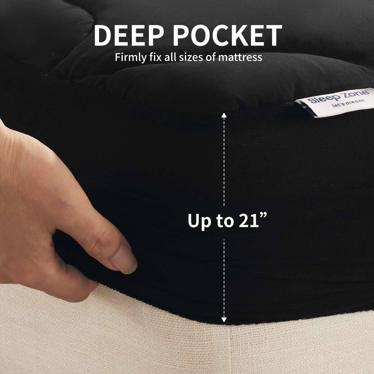 3. BOLSILLO PROFUNDO Y FÁCIL CUIDADO – Acolchado Estirable para adaptarse a colchones de 8″-21″, la falda de punto tejido puede estirarse hasta 21 pulgadas de profundidad y puede colocarse fácilmente en la mayoría de los colchones. El borde elástico puede mantener firmemente tu envoltura en su lugar, y la tela elástica hace que la envoltura sea fácil de colocar y quitar. Lavar a máquina en frío, no usar lejía, secar en secadora a baja temperatura.