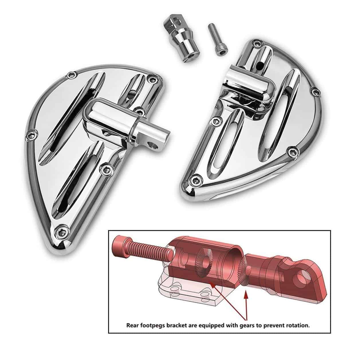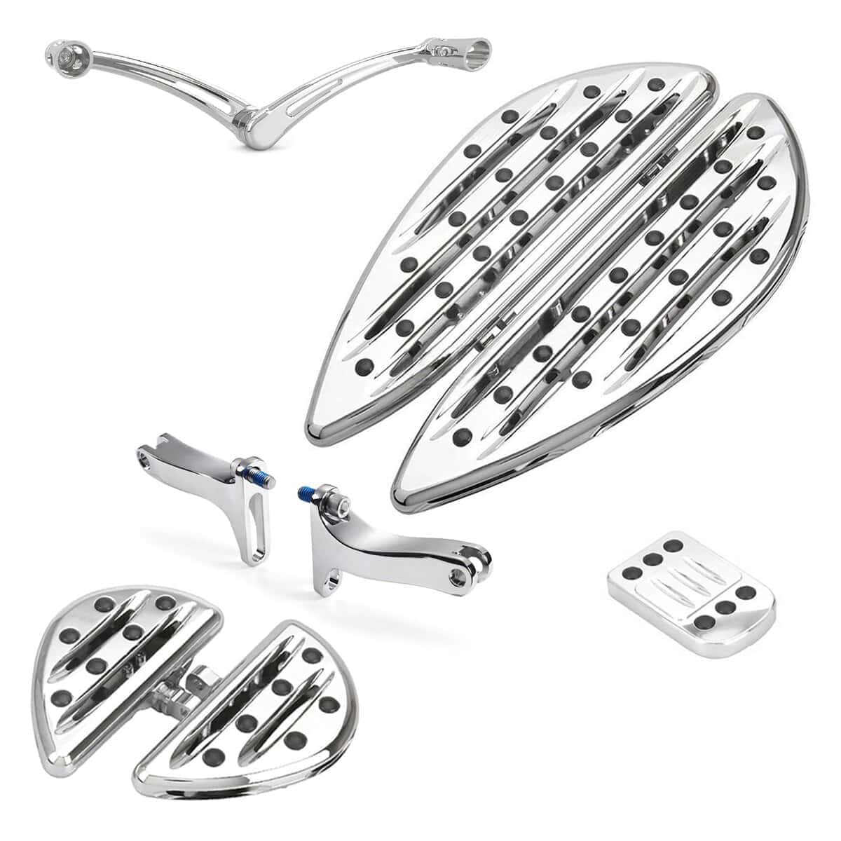 Obtenga comodidad adicional al conducir su motocicleta con estos reposapiés cromados de alta calidad. Diseñados para adaptarse a harley 1980-up Touring street glide Wide Glide FXDWG y reposapiés para softail FXST. El paquete incluye reposapiés del conductor y pasajero junto con la palanca de cambio de pie de dedo del pie. Disfrute de una experiencia de conducción más cómoda y estilizada con estos accesorios de calidad.