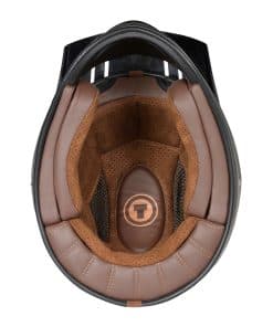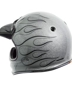 Casco de moto integral TORC T3 Retro Classic, tamaño XX-Grande, diseñado para brindar protección y comodidad. Cuenta con ventilación en la barbilla y la frente con malla metálica para entrada y salida de aire. La visera es desmontable y el forro interior está hecho de gamuza sintética para mayor comodidad. Tiene correa acolchada con cierre de anillo en D y un EPS de múltiple densidad para una mayor absorción de impactos. Construcción de carcasa compuesta que cumple con las normas de seguridad DOT y ECE 22.05, así como el estándar de seguridad de vehículos de motor federal (FMVSS) 218.