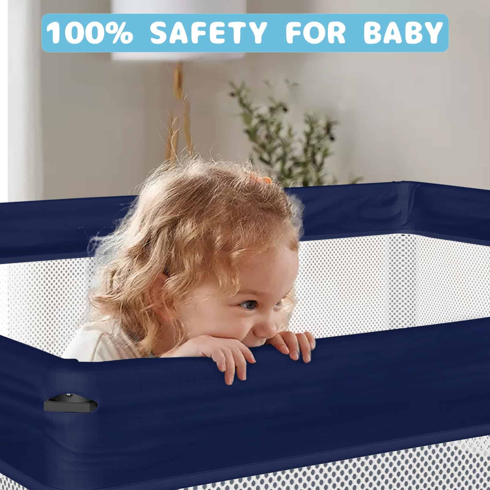 4. VISTA COMPLETA DE 360 GRADOS La puerta del corralito para bebés está diseñada con una cremallera externa para evitar que su bebé la abra y se salga. Diseñado con una pared de malla ventilada y transpirable para evitar la asfixia del bebé, también proporciona una buena vista para que usted y su bebé interactúen en cualquier momento, brindándole a su bebé suficiente seguridad.