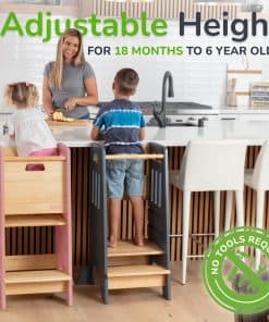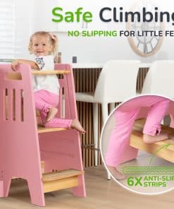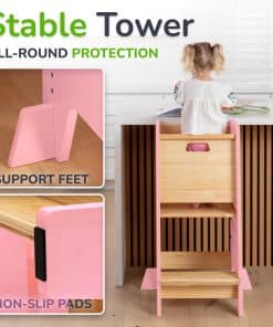 1. DISEÑO BIEN PENSADO para garantizar que esta torre para niños sea adecuada para todos los niños menores de 150 libras; incluso para aquellos traviesos. Todos pueden explorar su nueva independencia en un entorno Montessori.