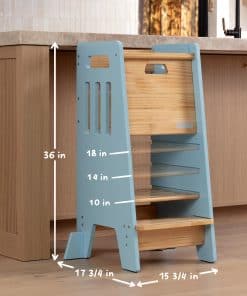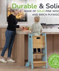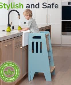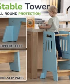 CUIDADO EN TODOS LOS LADOS: No solo un taburete, sino una torre completamente cerrada. La puerta corredera es fácil de usar, asegurando que subir y bajar sea pan comido y a la vez asegurando que el niño no se caiga mientras está de pie en la torre.