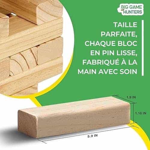 3. Bloques de Madera de Pino Hechos a Mano: Los 58 bloques de juego de madera proporcionan una durabilidad de larga duración que es respetuosa con el medio ambiente y que lo hace seguro para niños, adultos y familias. Haciendo que sea un momento de ocio divertido entre noches de juegos en familia, fiestas y regalos.