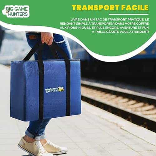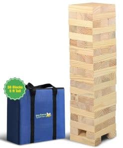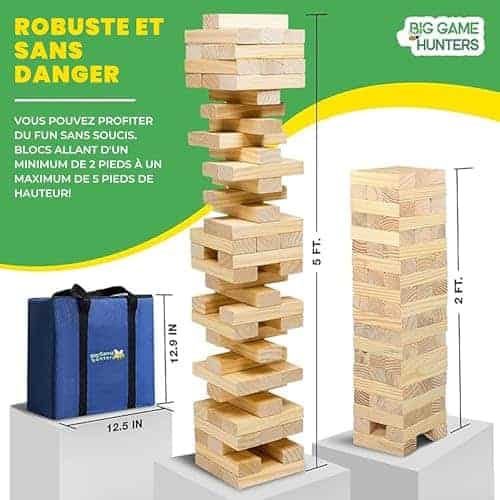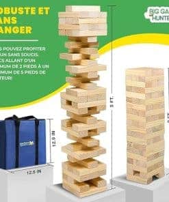 4. Comodidad en el Almacenamiento: El juego de torre Jumbo HiTower viene con una bolsa de transporte que permite tener todos los bloques de madera en ella. Ahora puedes llevar el set de juego de tiro al blanco a cualquier lugar, disfrutando de tiempo de calidad con tus amigos o familiares. También es fácil de limpiar.