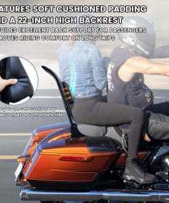 3. Ciclismo más cómodo: El respaldo para harley con cojines suaves y respaldos altos de 22 pulgadas, pueden brindar a los pasajeros un excelente apoyo lumbar y mejorar la comodidad del viaje de larga distancia.