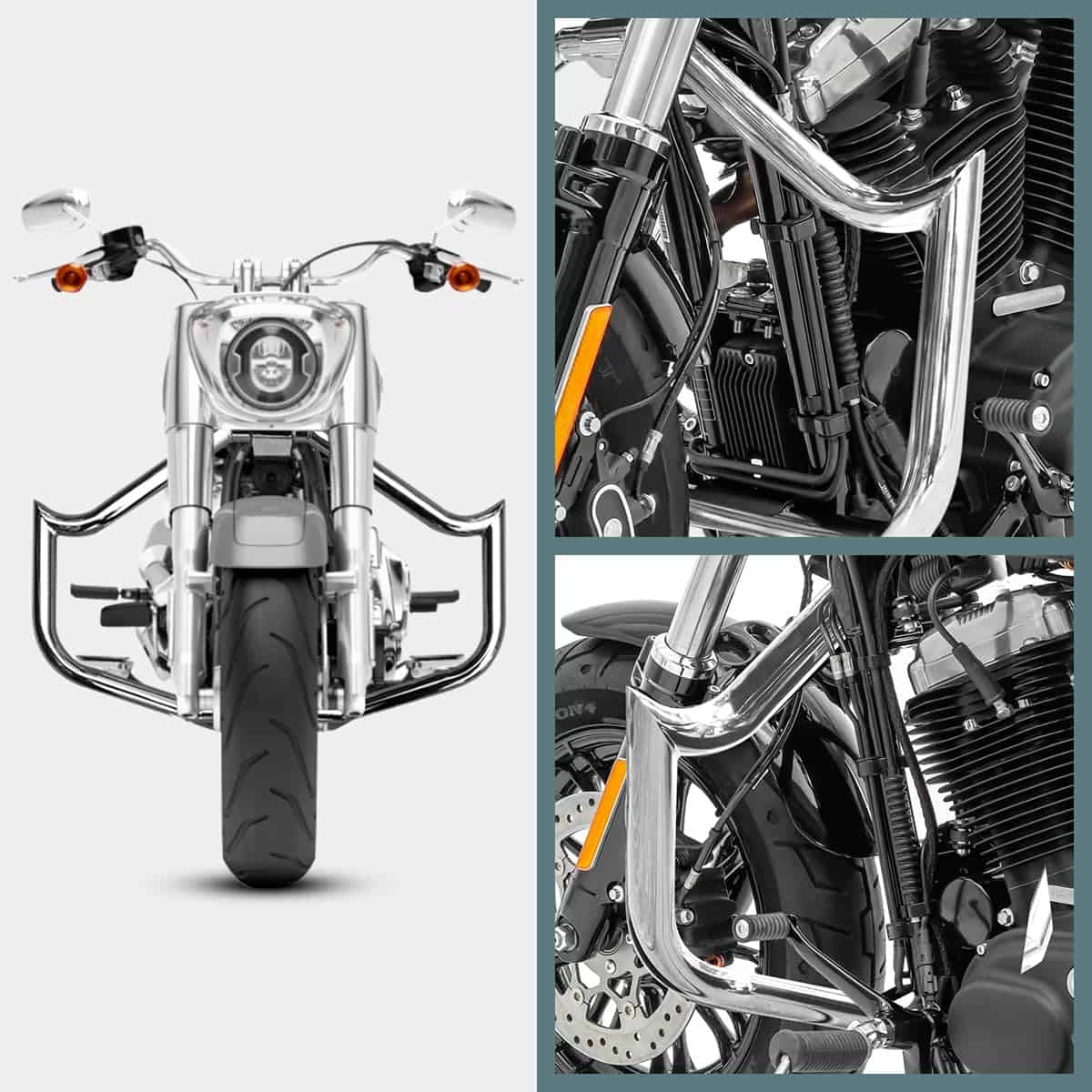Barra protectora de motor totiancong para Harley Davidson Sportster Iron 883 XL883N 2009-2022; 1200 Custom XL1200C 2004-2022; Roadster XL1200R 883 XL883 XL883C ’04-08; SuperLow XL1200T 14-22. Esta barra protectora está diseñada con material de acero resistente de 1-1/4 de pulgada, con un tratamiento de superficie de electrochapado de color plata que ha pasado una prueba de pulverización de sal de 48 horas para garantizar su durabilidad. Con un diseño único en forma de cuerno, esta barra protectora no solo brinda protección adicional a su motocicleta, sino que también mejora la comodidad del conductor al conducir. Todos los tornillos están hechos de acero inoxidable 304, lo que le brinda una mayor durabilidad y resistencia al envejecimiento. Disfruta de la combinación perfecta de estilo y funcionalidad con esta barra protectora para tu Harley Davidson Sportster.