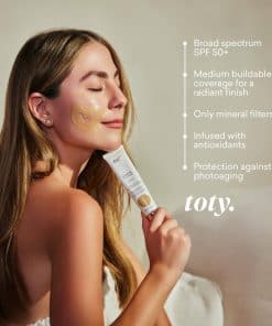 Esta CC Cream ayuda a ocultar enrojecimientos, equilibrar el tono de la piel en general y difuminar imperfecciones para un efecto de enfoque suave. Infundido con una mezcla antioxidante de Polypodium leucotomos, Té Verde y Vitamina E, también proporciona defensa anti-envejecimiento. A Sofía le encanta esta CC Cream! Maquillaje híbrido, protector solar y cuidado de la piel. Ideal para tipos de piel normal a grasa. Alto contenido de filtros minerales es ideal para climas húmedos y ayuda a controlar el exceso de grasa. Base cremosa con cobertura media, construible y un acabado radiante para perfeccionar tu piel. No comedogénico ¡sin brotes! Defensa anti-envejecimiento. Seguro para los ojos. Ligeramente perfumado para evitar el olor a protector solar. Vegano, libre de crueldad animal, probado por dermatólogos y libre de parabenos, todos los productos de Toty son probados por terceros. Soluciones respaldadas por la ciencia: Toty es una marca de cuidado de la piel que reinventa el cuidado solar, la mezcla perfecta de belleza y ciencia con la visión de Sofía Vergara y desarrollada clínicamente por Cantabria Labs, líder europeo en cosmeceútica desde hace más de tres décadas.