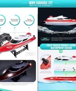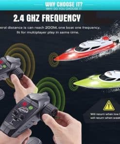 Barcos RC de alta velocidad (21.7MPH+) Barco de Control Remoto Electrónico Juguetes de Carrera para Adultos y Niños Paquete que incluye: 1x barco RC; 1x transmisor; 1x cargador USB; 1x manual; 3x batería; 1x hélice; 1x llave hexagonal; 1x soporte de exhibición; 1x cabeza de bola protectora Frecuencia 2.4Ghz; Tipo de batería 1500mAh 7.4V; Tiempo de carga 150 minutos; Batería para el controlador 4×1.5AA No incluido; Distancia de control 500M; Tiempo de juego 8-10 minutos; Motor cepillado: motor 540; Velocidad máxima: 35km/h; Funciones 6 canales Barco RC de alta velocidad, hasta 50km/h, listo para que disfrutes de la navegación libre en agua hasta 200 metros de distancia de control. Con luz nocturna intermitente en la parte delantera y trasera, indicador de batería baja, cuando la batería del barco está baja durante la conducción, la velocidad disminuirá para avisar. Sistema de refrigeración por circulación de agua y cubierta de protección impermeable de doble capa y forma redonda. Condición: Nuevo Material: plástico y metal Nota: Si tienes alguna pregunta, no dudes en contactarnos.