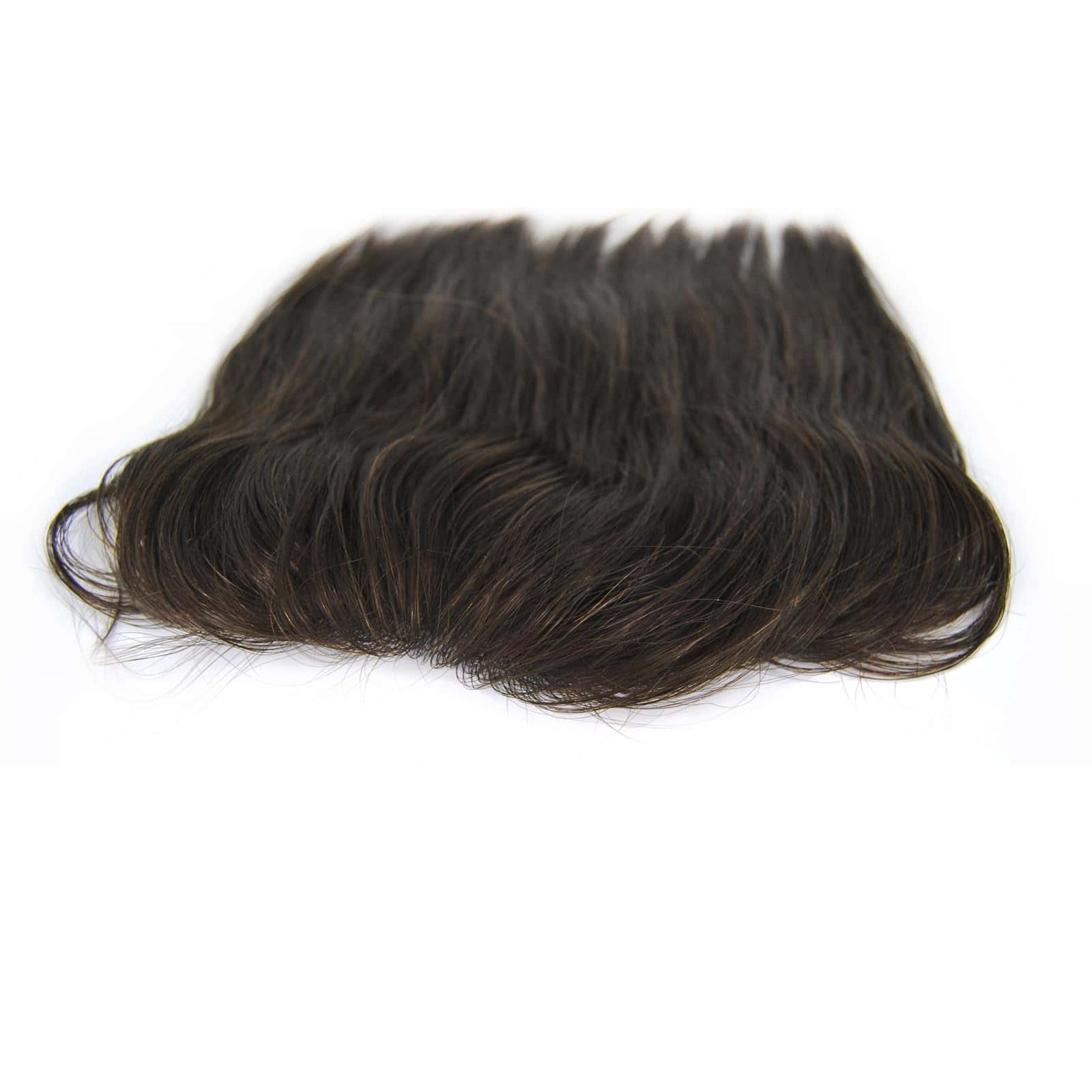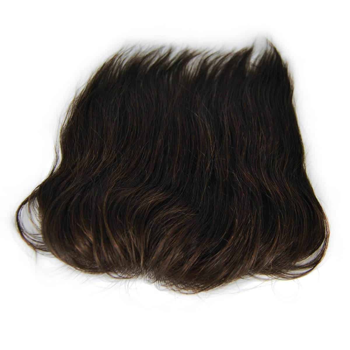 4. Adecuado para la pérdida de cabello o cabello fino en el área de la frente. El tamaño de la base es de 7 pulgadas por 1.75 pulgadas, se puede cortar si no es adecuado para su área de toupee.