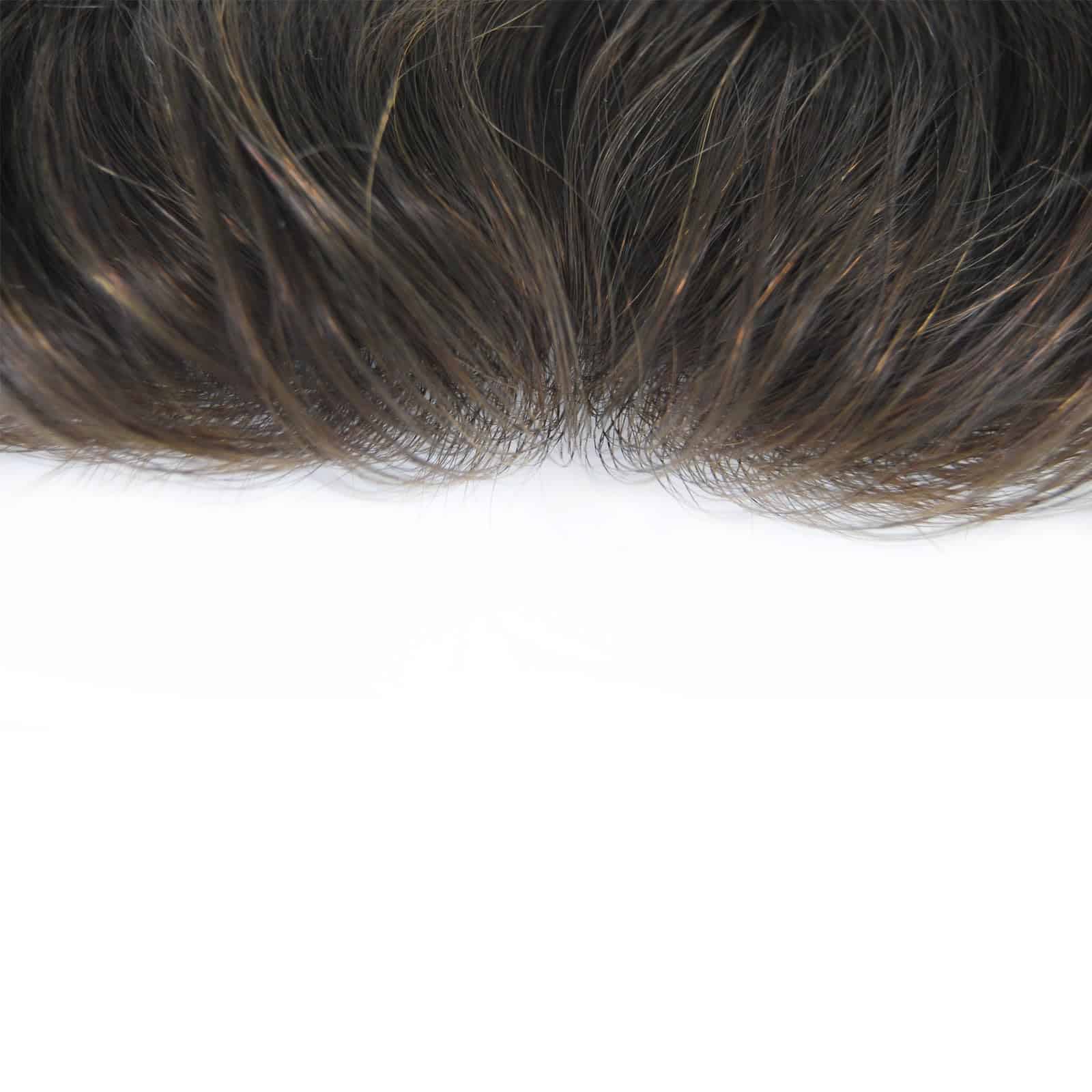 1. Toupee en forma de V para la línea del cabello frontal de hombres, color marrón oscuro.