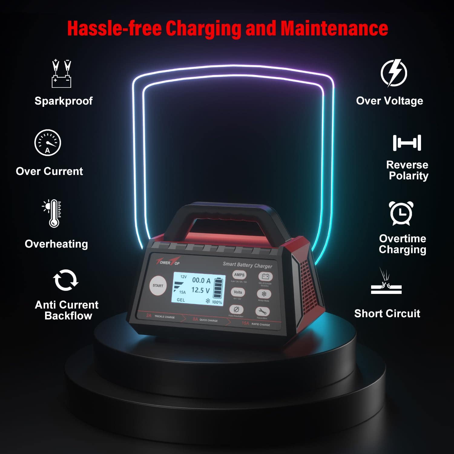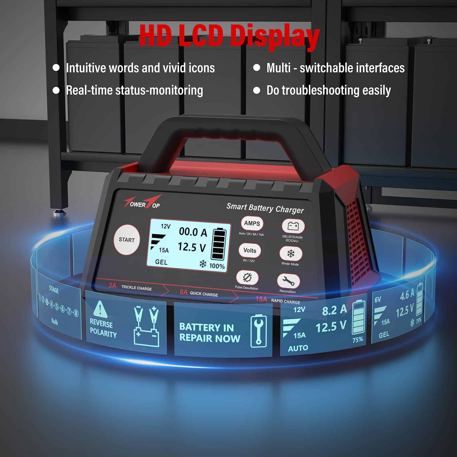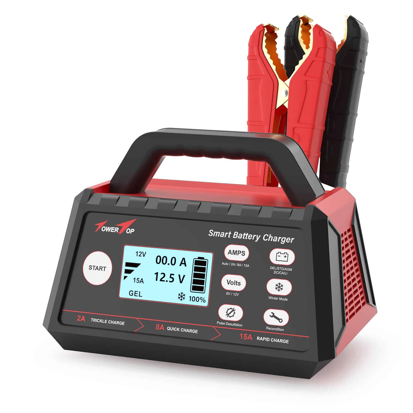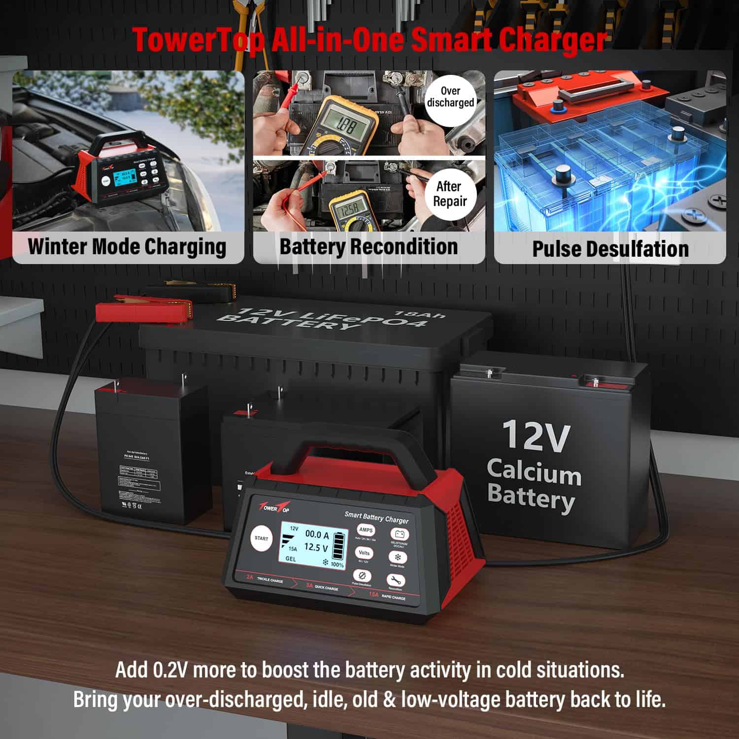 El cargador y mantenedor de batería de alta frecuencia de TowerTop se utiliza para mantener las baterías en vehículos almacenados y aplicaciones de baterías a la capacidad óptima.